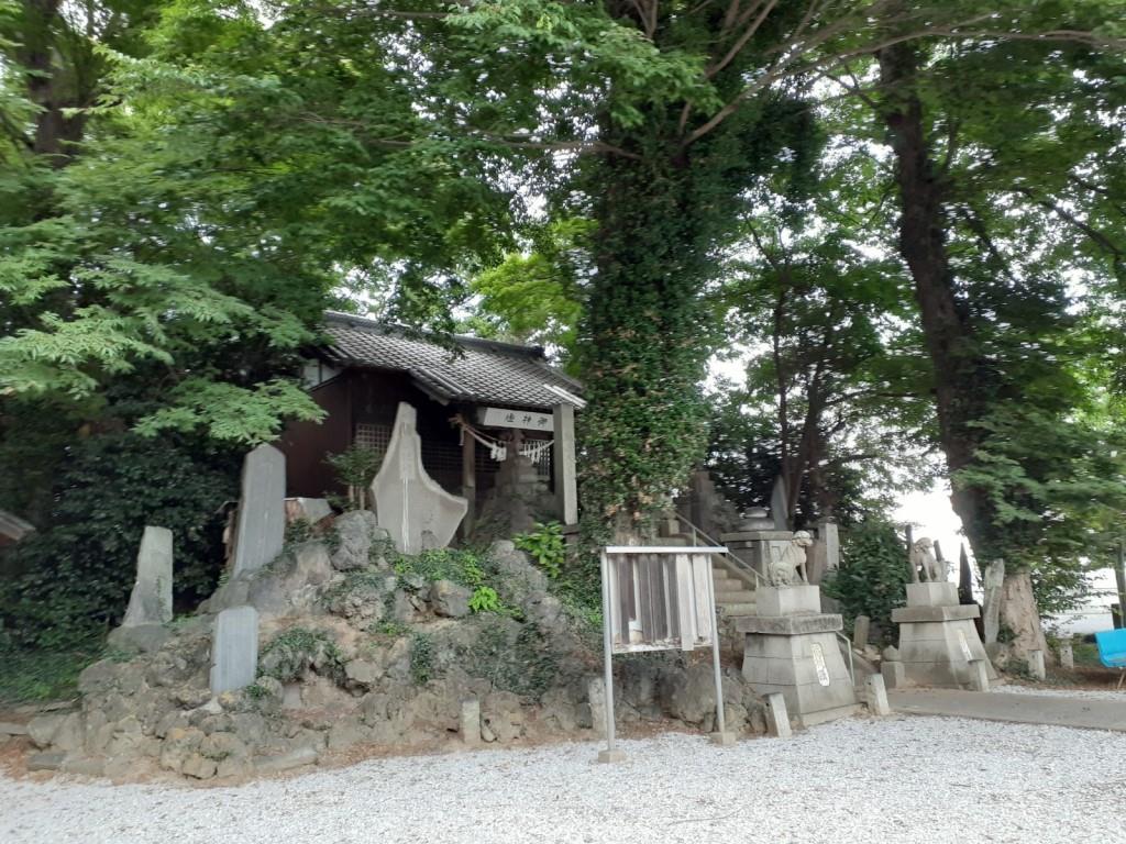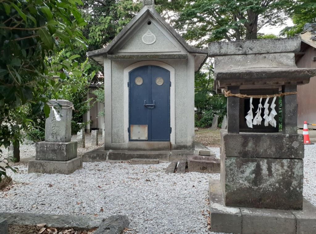 鳥居の手前左側に鎮座している境内社・八雲社 社殿右側端にある御嶽山座王権現の石祠