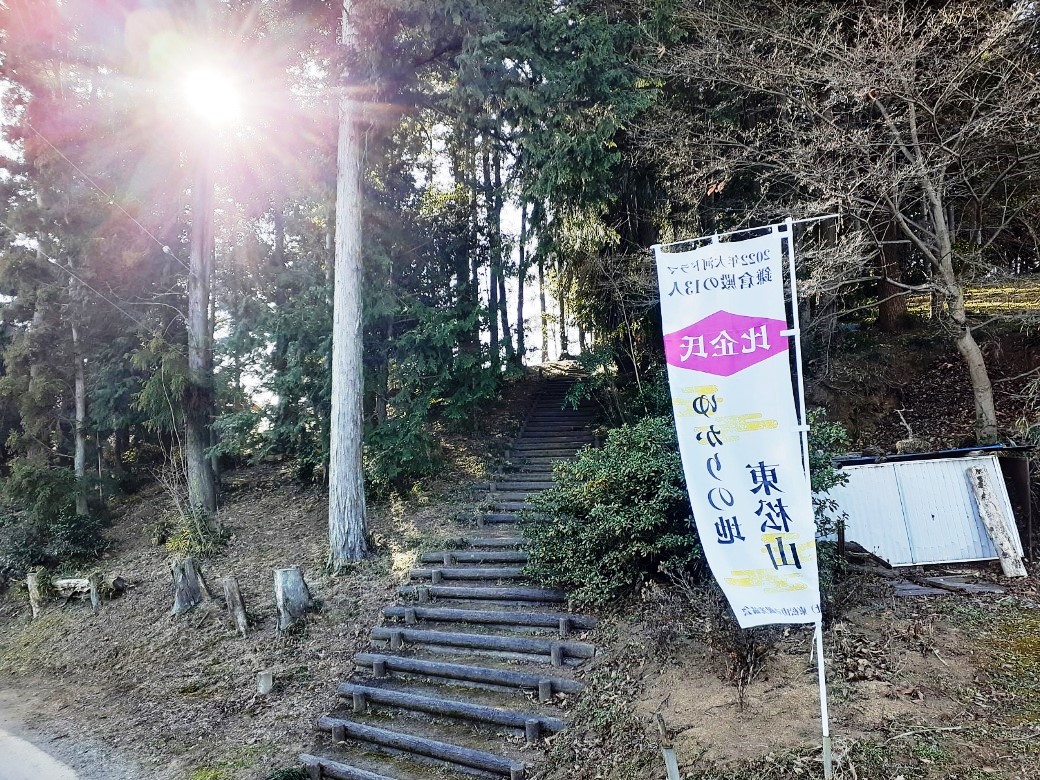 社は東平地域の東端近く、交通量の多い県道からは少し奥に入った場所で、丘の上に鎮座している。