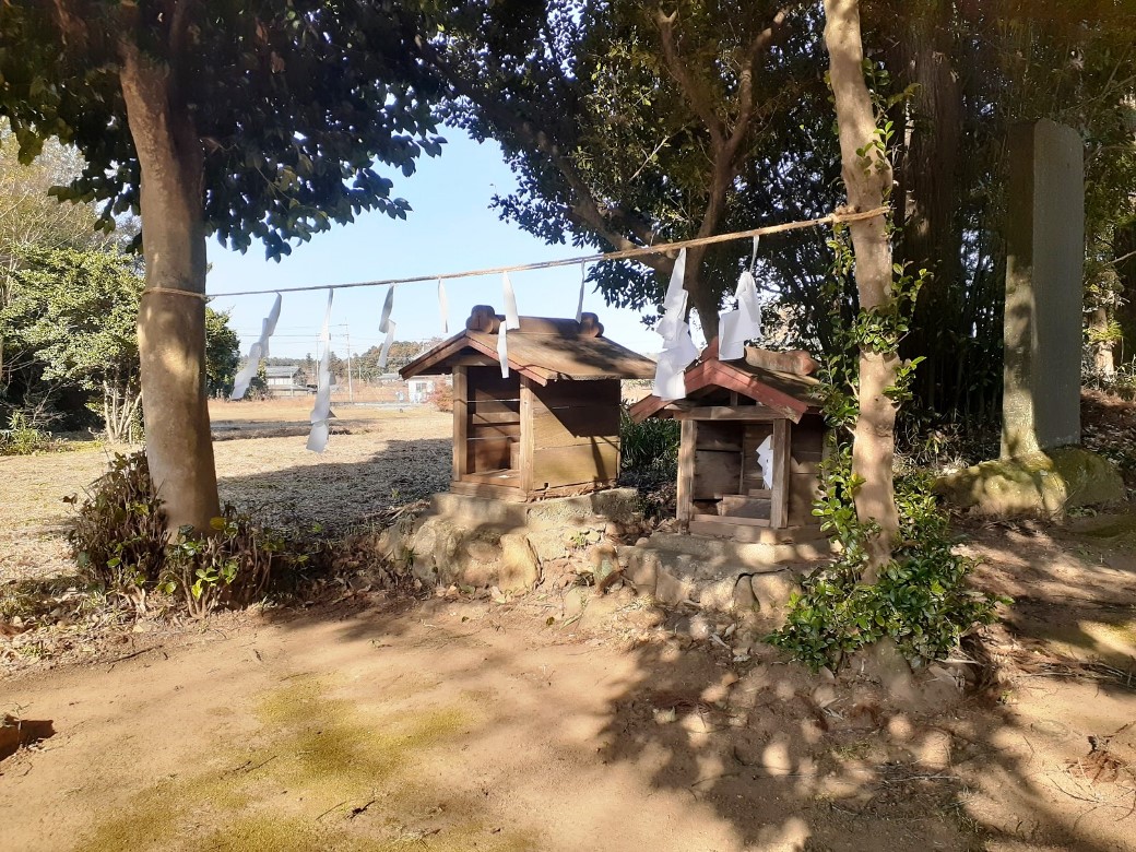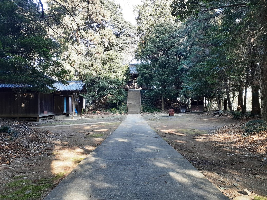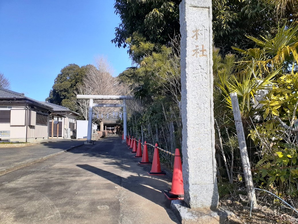 道路沿いには社号標柱のみあり、鳥居はその奥に設置されている。