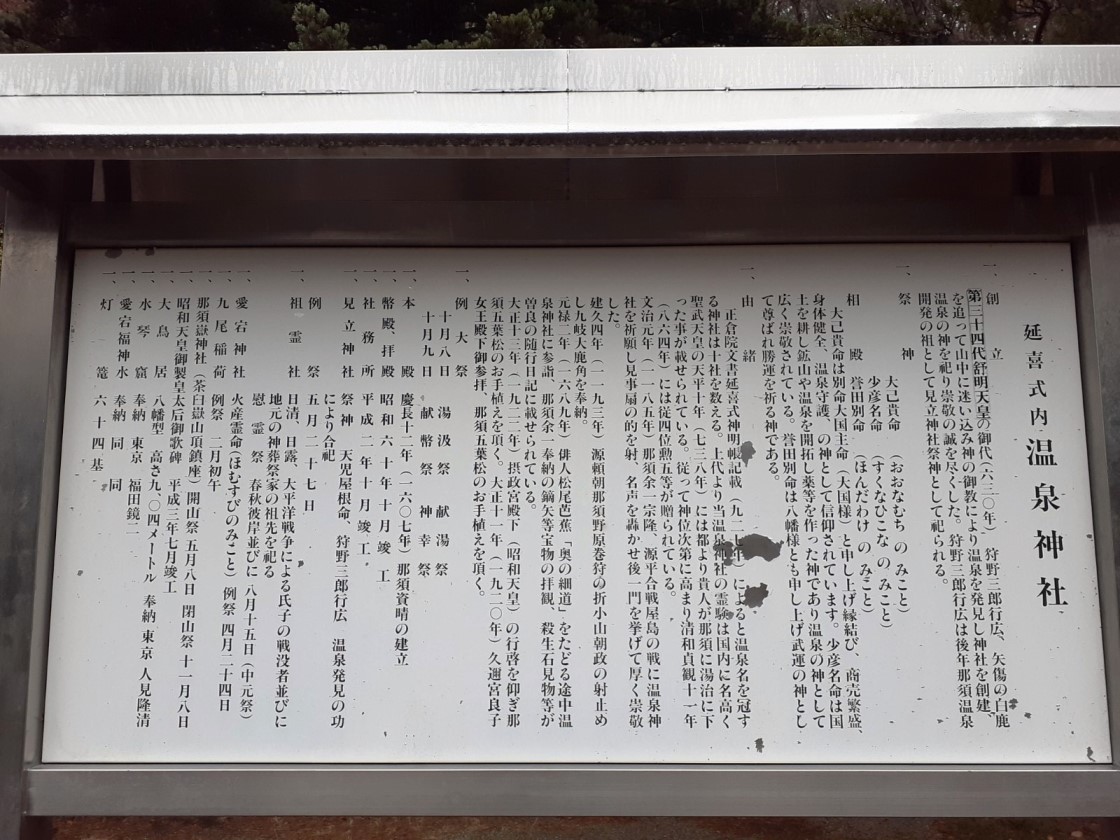 参考資料 「那須町 商工会HP」「とちぎいにしえの回廊」「那須温泉神社HP」「Wikipedia」等