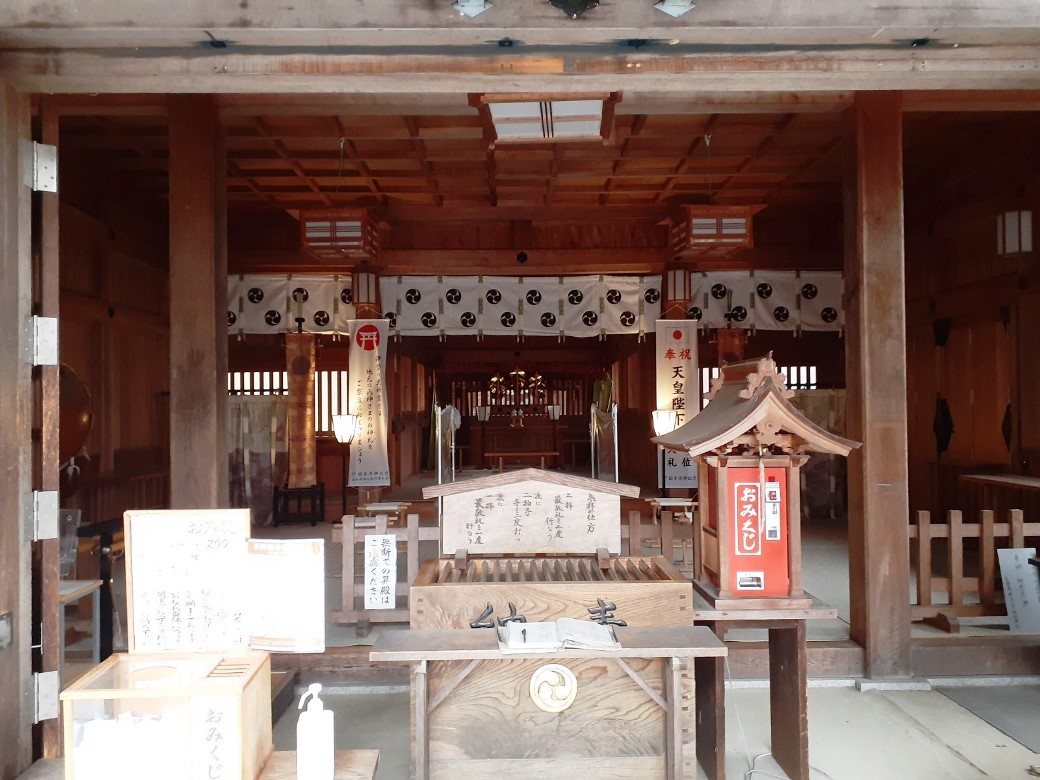 拝殿上部に掲げてある扁額 拝殿内部