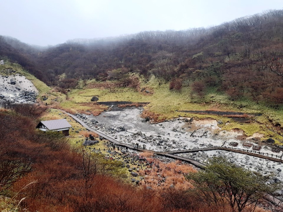 残念ながら時間と体力の関係で、殺生石を周ることができなかったが、九尾稲荷神社から温泉のガスが噴き出す賽の河原を見下ろしただけでも、異様な空間がそこにある事が良く分かる。