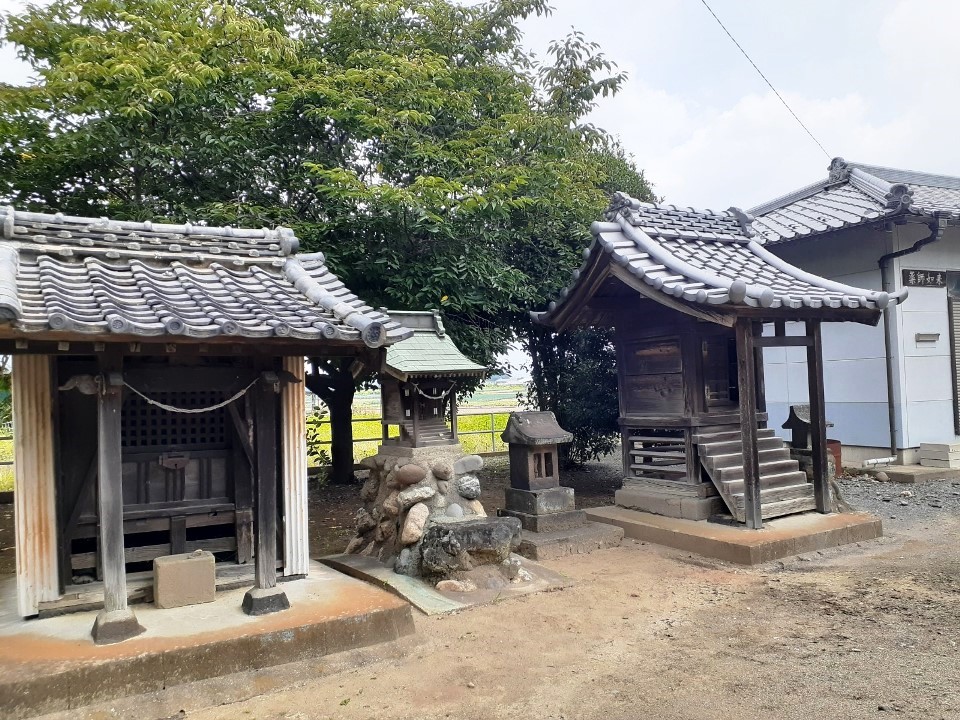 社殿左側に鎮座する境内社 社殿左側には末社(石祠)群があり。