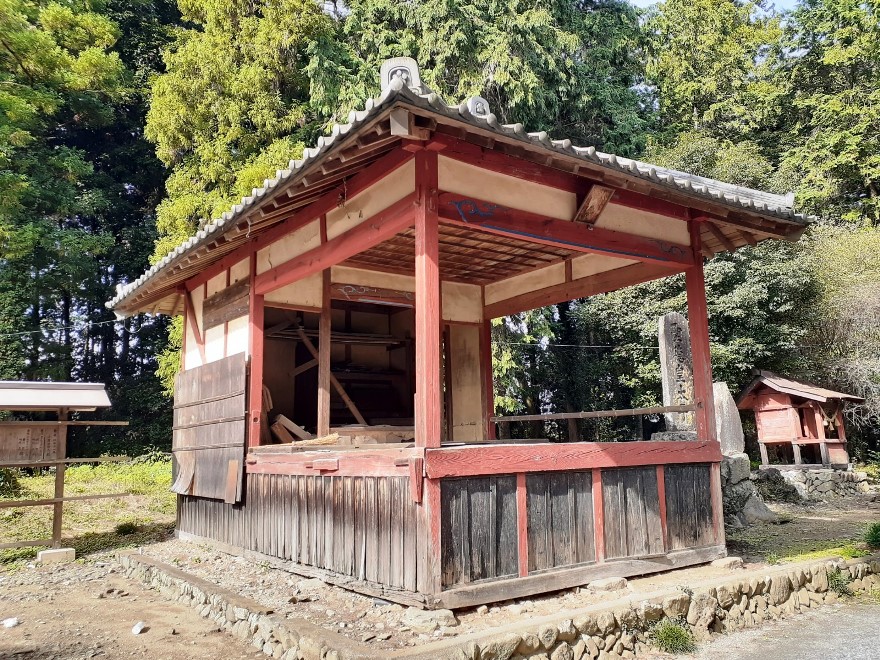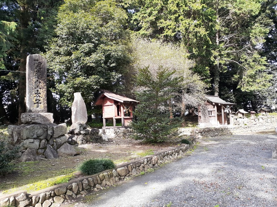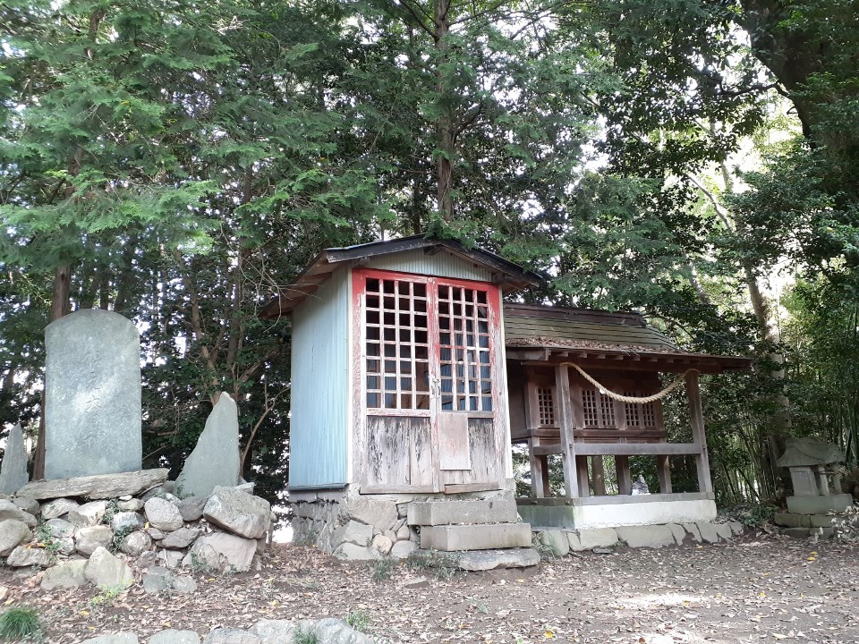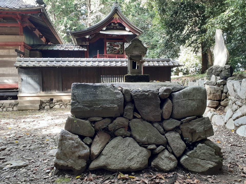 社殿右奥にも境内社や石碑、石祠が鎮座する。 立派な石組みの上には石祠が1基鎮座。