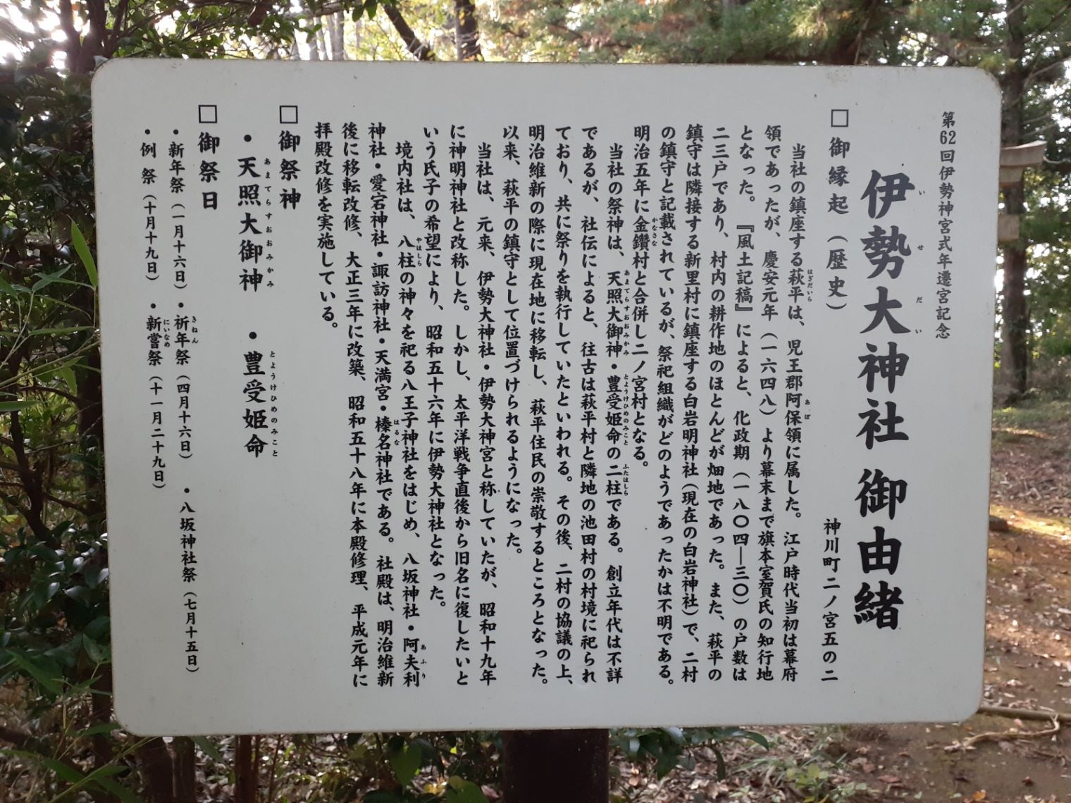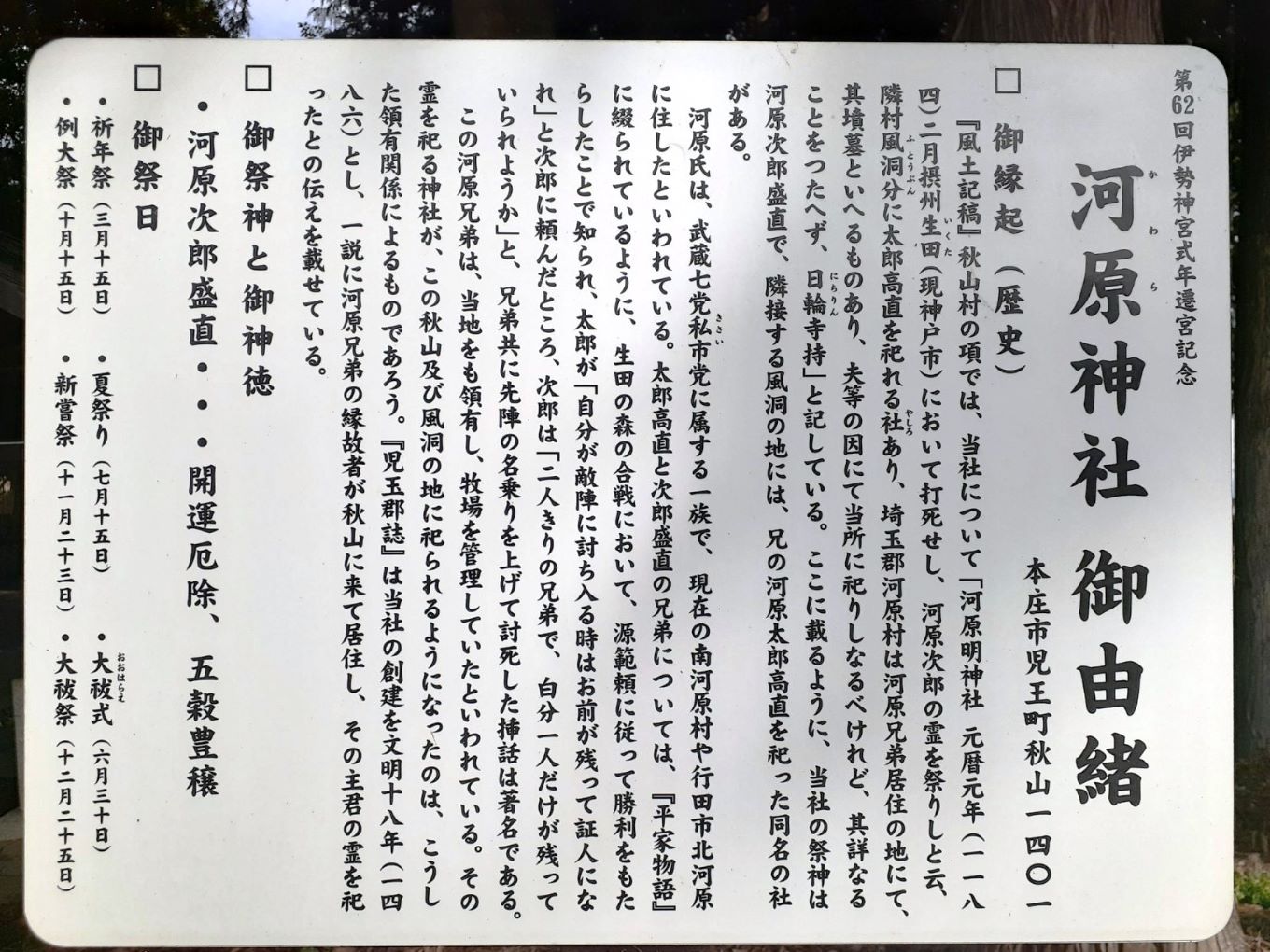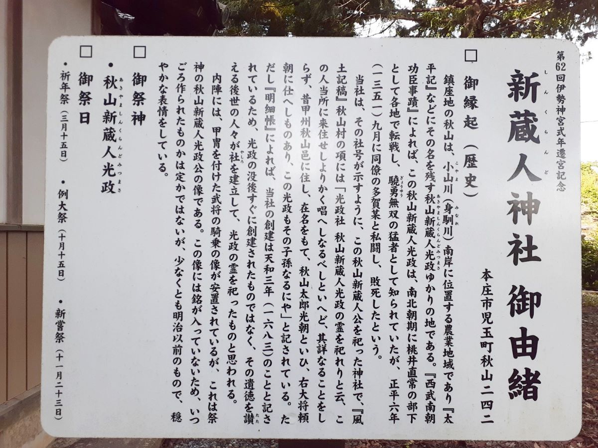 秋山河原神社に設置された案内板