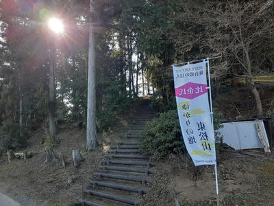 社殿から北側に伸びる「大谷・伝説の里コース」 秋葉神社の裏側にある丸太造りの階段
