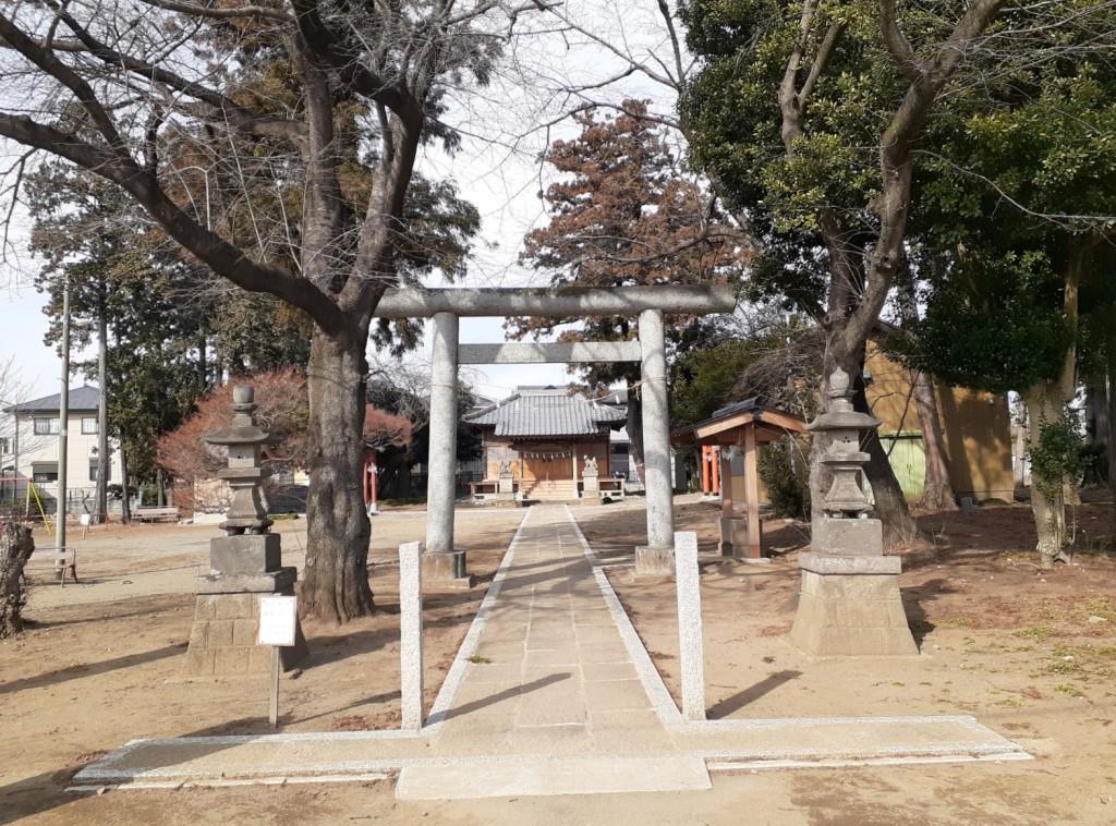 原馬室野宮神社から西方向に進路を取り、「なのはな通り」に合流する。「なのはな通り」を北上し、「鴻巣市 中学校給食センター」の十字路を左折し、細い道路を荒川河川敷沿いまで進み、そこから「御成橋」方向に350m程北上すると社の鳥居が見えてくる。周囲は草地と畑。実は、ポビー祭りやコスモス祭り会場でもあるので、細いながらも意外と舗装路もあるので車でも行ける。