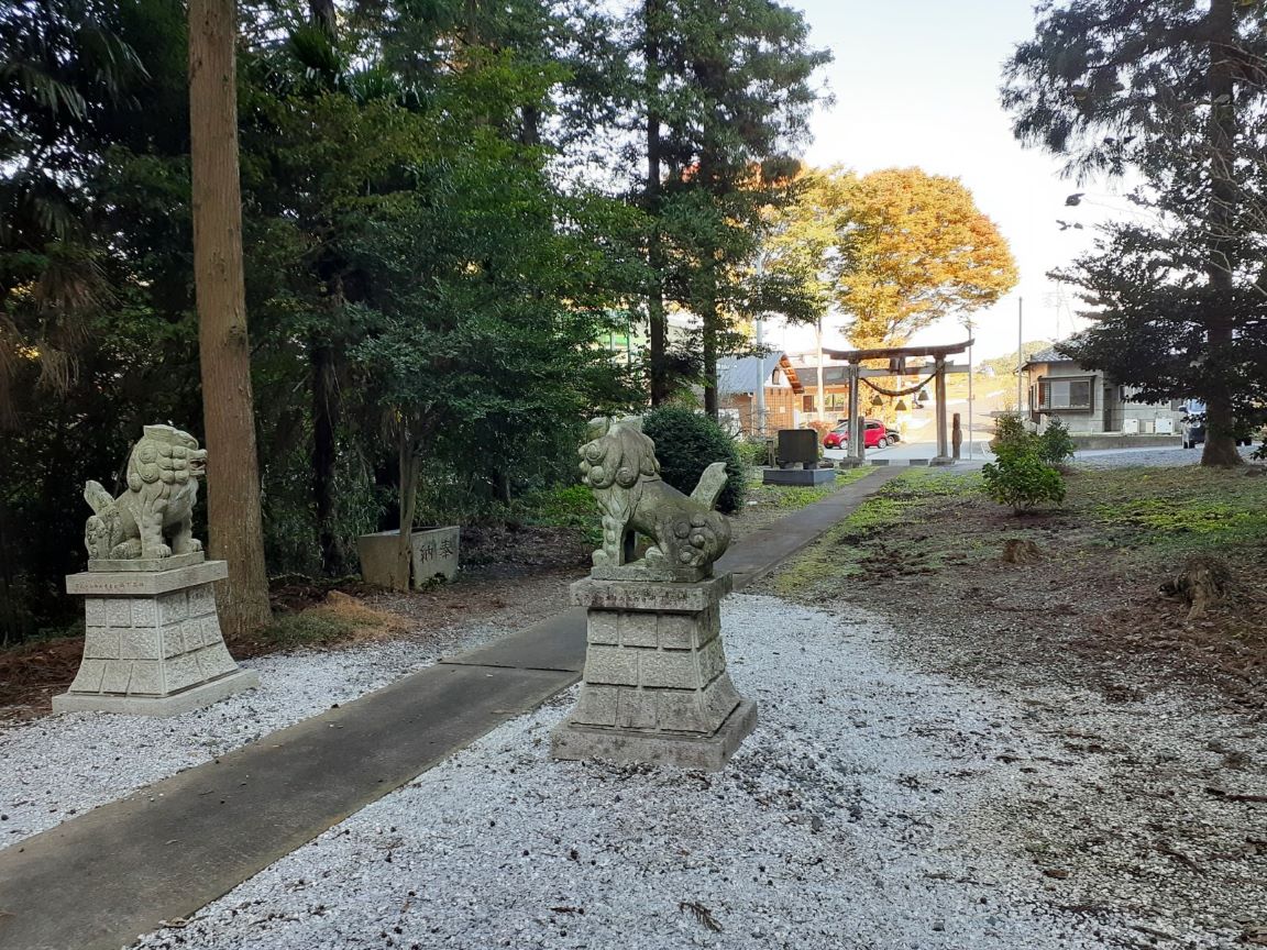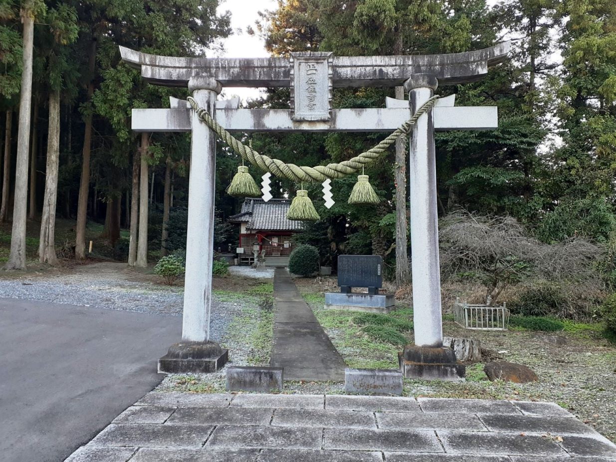 拝殿覆屋の右隣に鎮座する境内社 鳥居正面にある社日神と石碑
