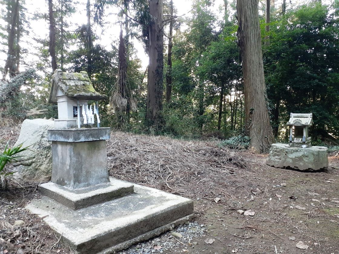 どうやら社日神、石碑が設置されている。 設置されている配置となっている。