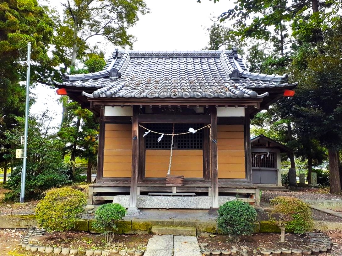 広大な妻沼低地の肥沃な地域の中に集落は形成され、その最北東部に社が鎮座している。まさに村の鎮守様との形容が相応しい社。