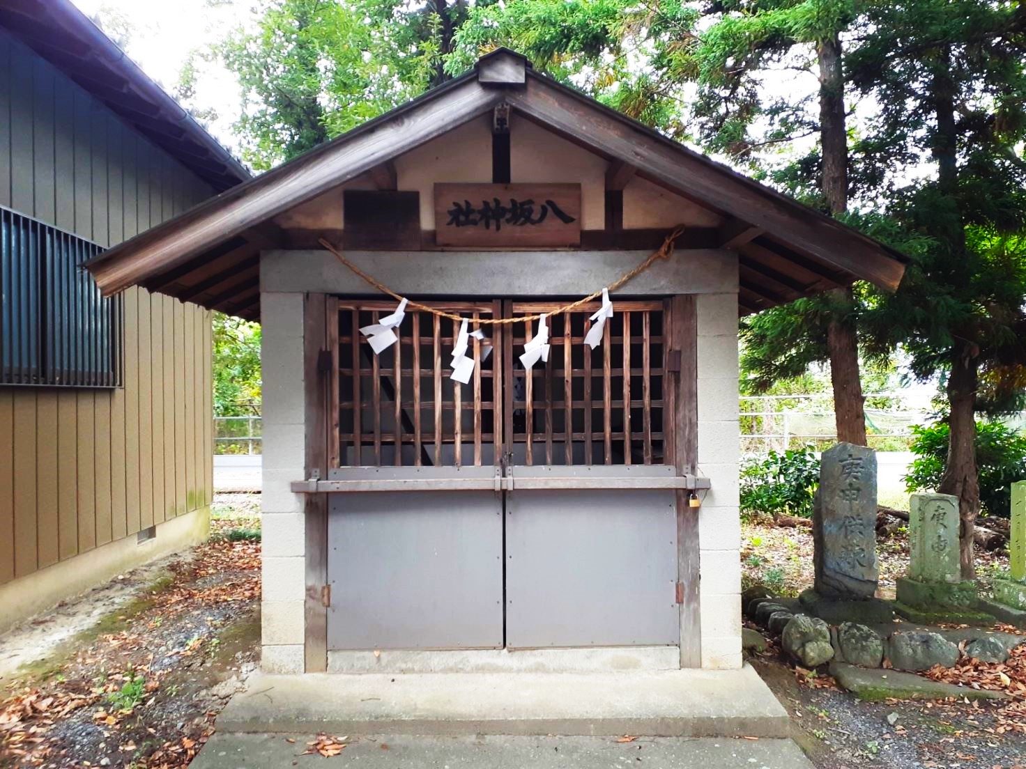 社殿の右側に鎮座する境内社・八坂神社 八坂神社の隣には庚申石碑2基