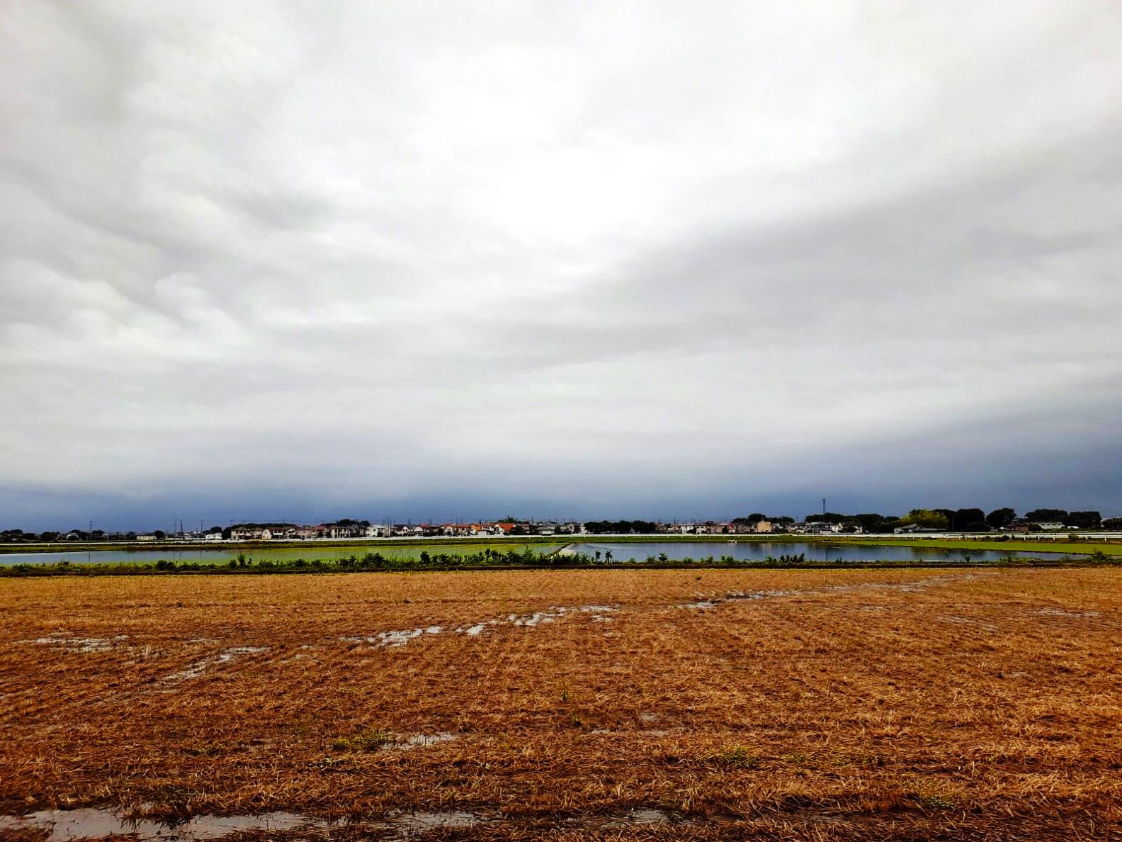 奈良新田湯殿大神社のすぐ東側には横塚山古墳(写真中央部のこんもりとした場所)が見える。