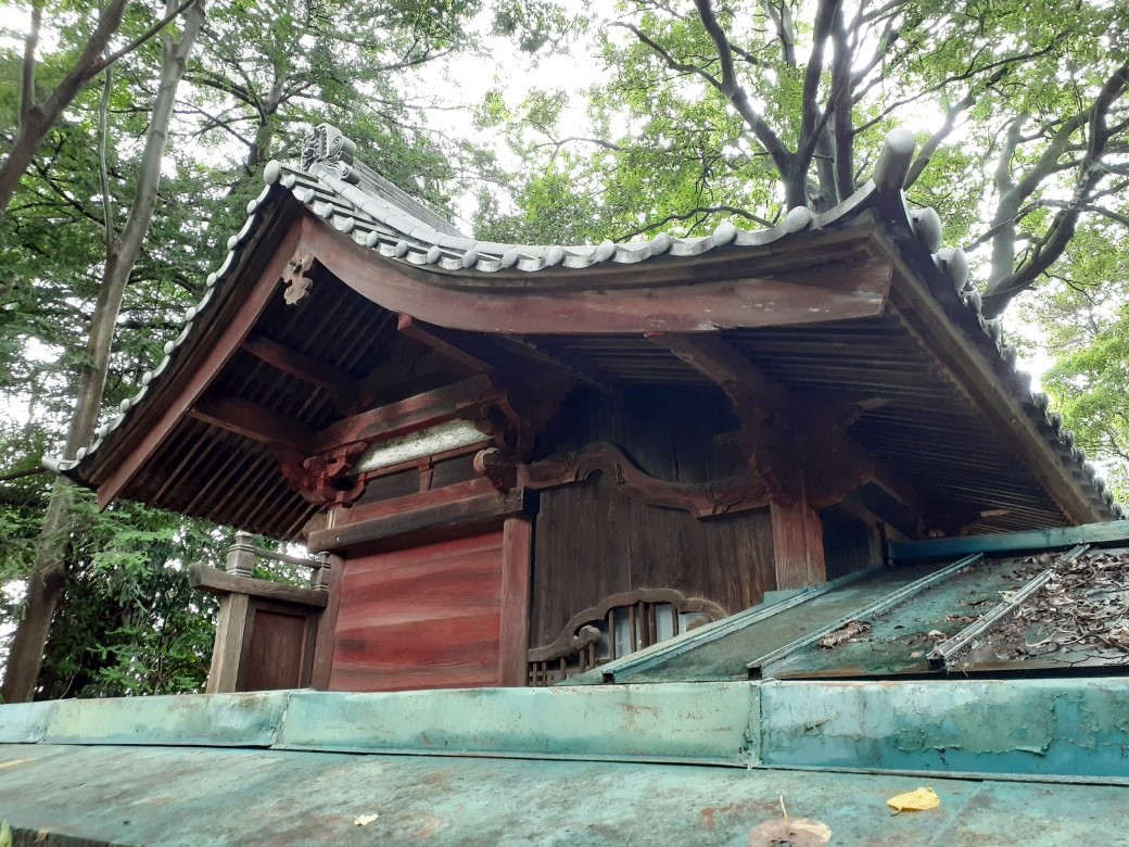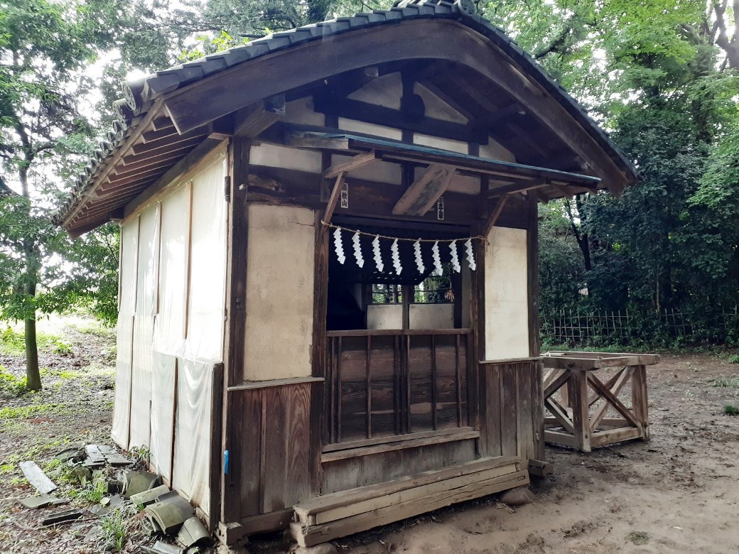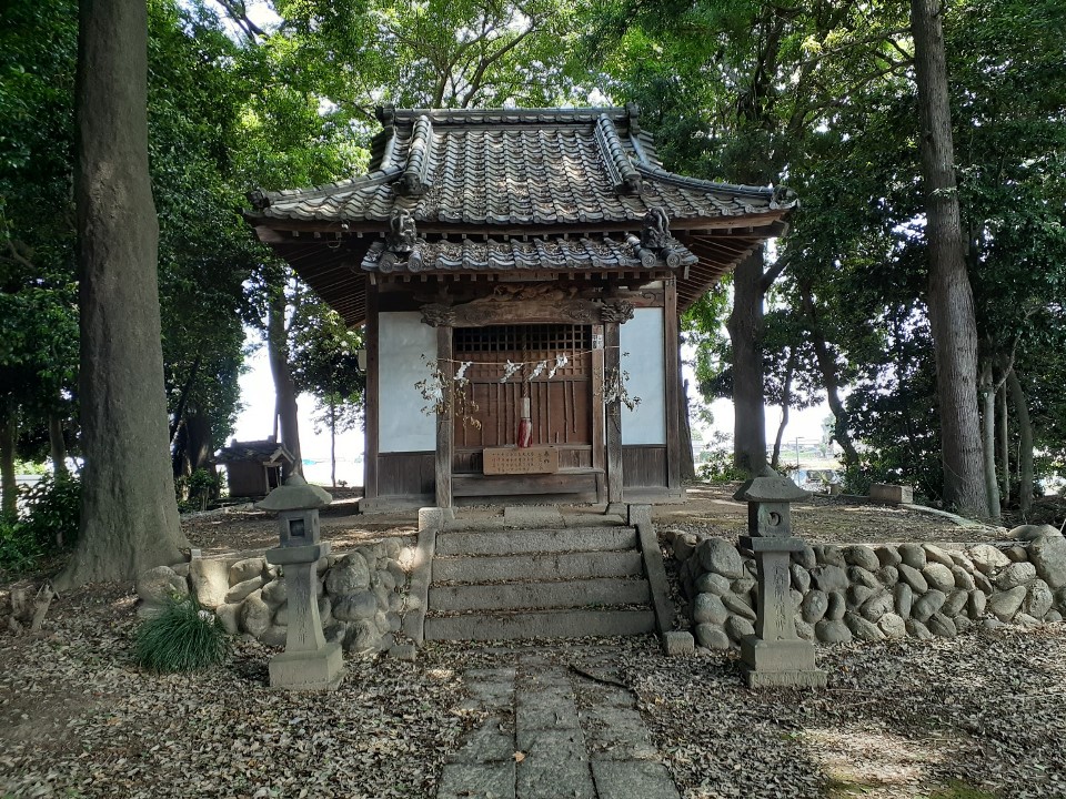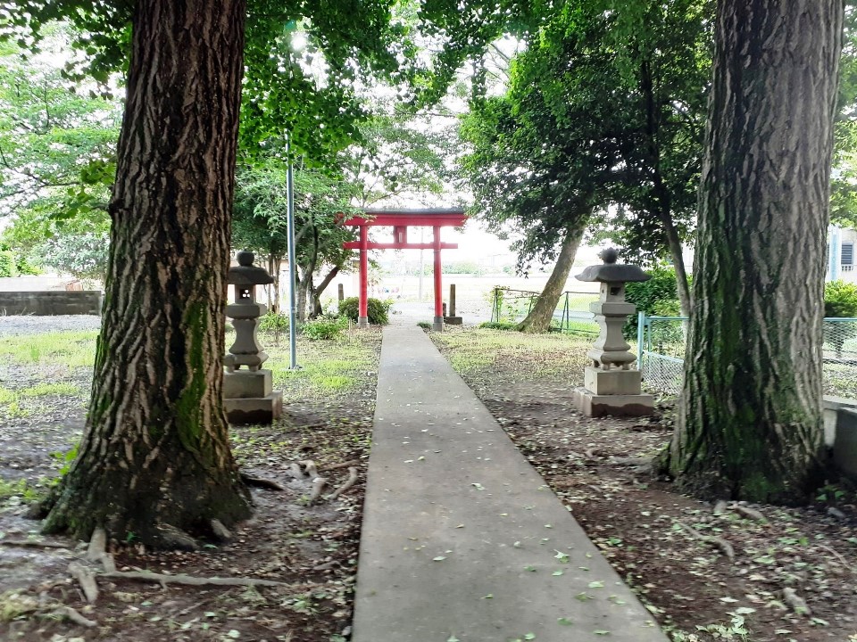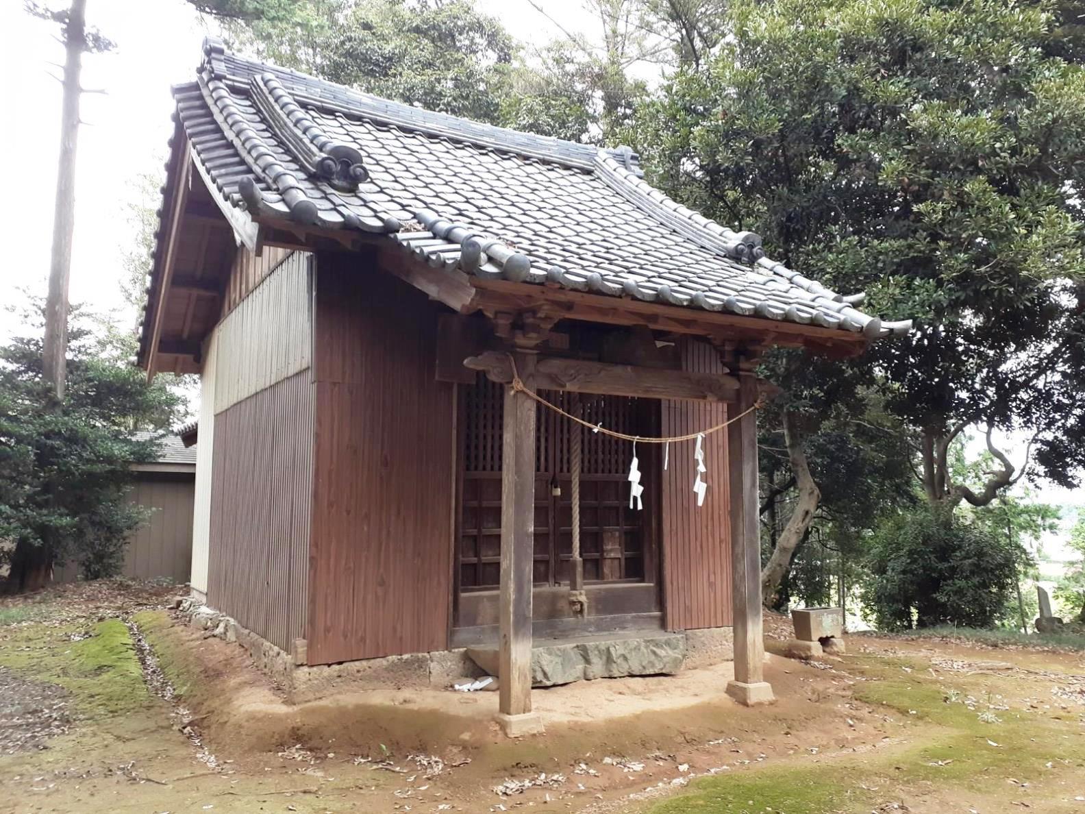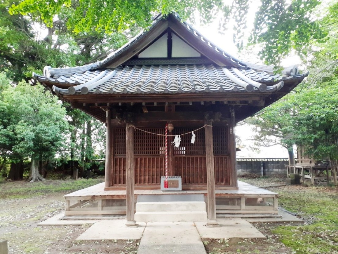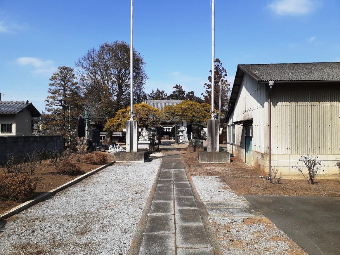 鳥居は東向きに立っているが、実のところ社殿は南向きである。鳥居を過ぎて参道を進むと、一旦突き当たるので、そこを直角右方向に進む参道があり、その先に社殿は鎮座している構図となっている。