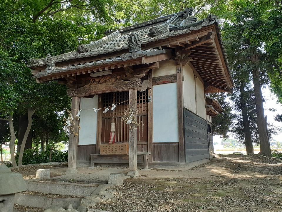 実のところ、県道86号線から右折する細い道からでも、右前方に社の社叢を仰ぎ見ることができるが、鬱蒼とした社叢ではないので、初めて参拝する方には、ナビ等は必要ではないかと感じた。