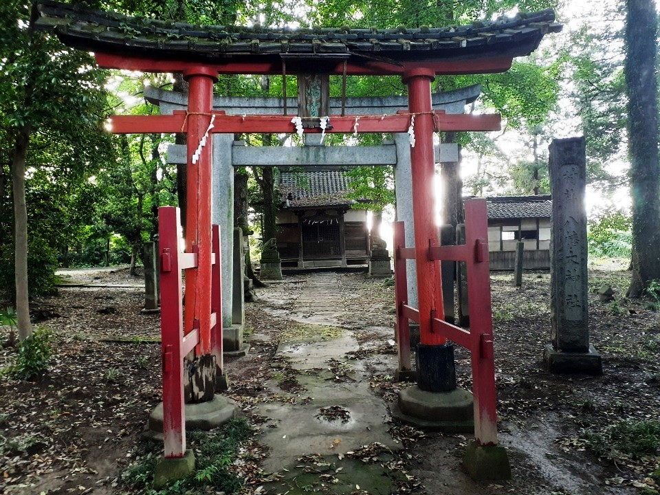 上須戸八幡大神社の途中までの進行ルートは西城大天獏神社を参照。上須戸地区は、西城地区の東側に位置し、西城神社からは埼玉県道263号弁財深谷線を東方向に進み、同303号弥藤吾行田線と交わる交差点手前の道幅の狭い道路を左折、道なりに真っ直ぐ進むと上須戸八幡大神社に到着できる。