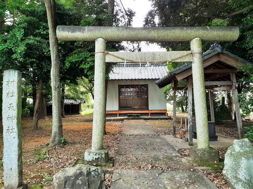 「聖天社 村の鎮守なり、 慶長十一年の勧請にして本地十一面観音を安す 永楽寺の持、神明社 熊野社 稲荷社 村民の持」と記述されている。