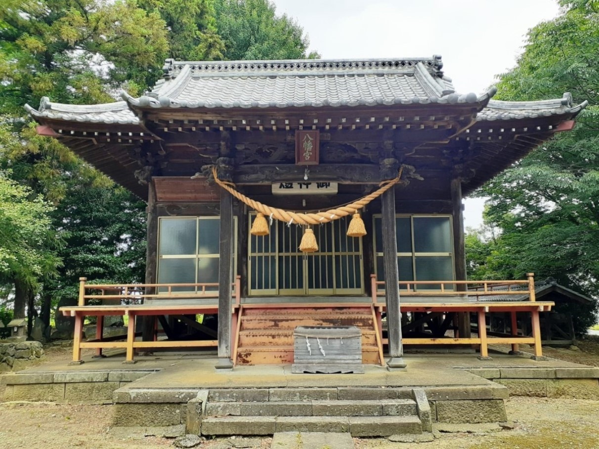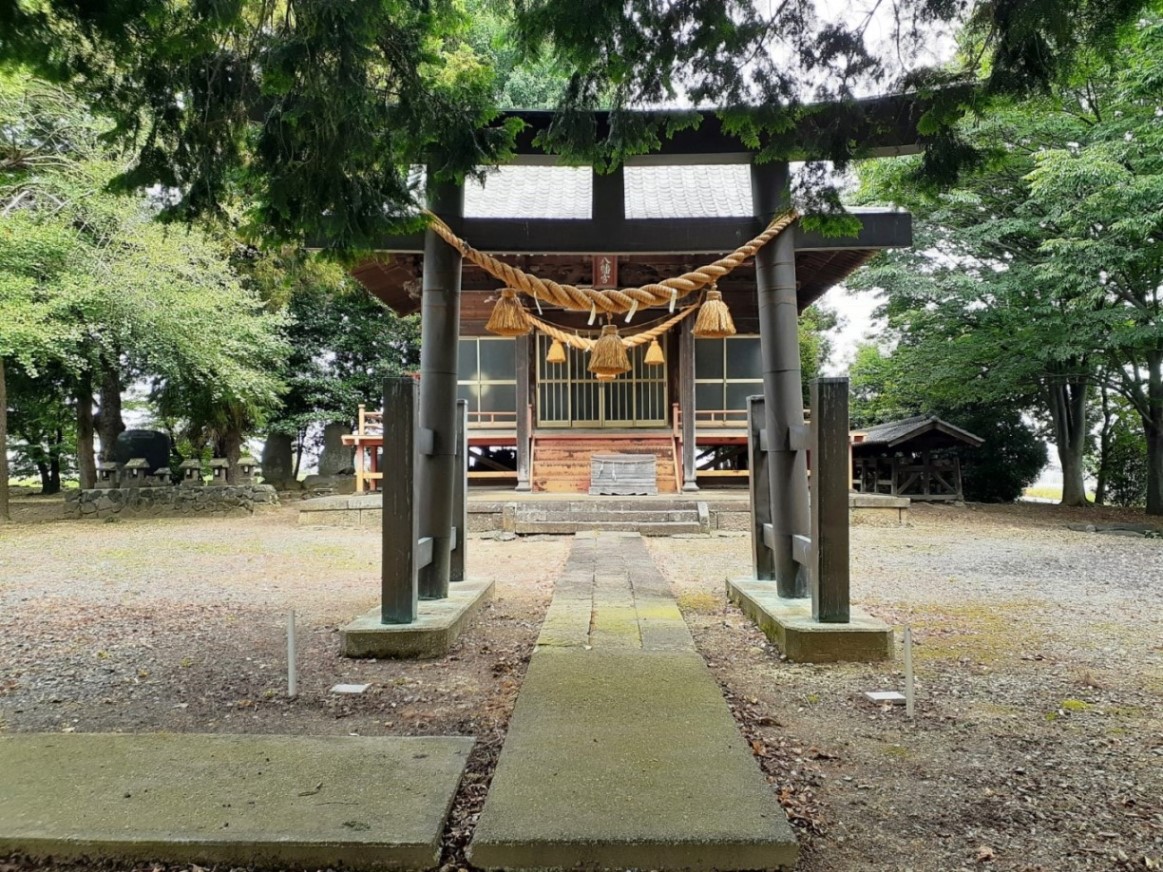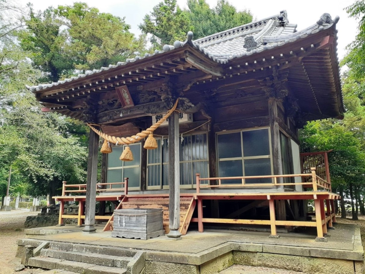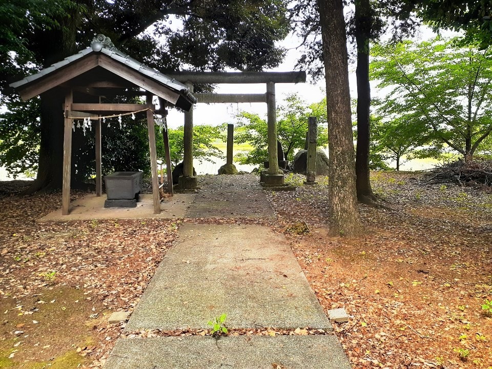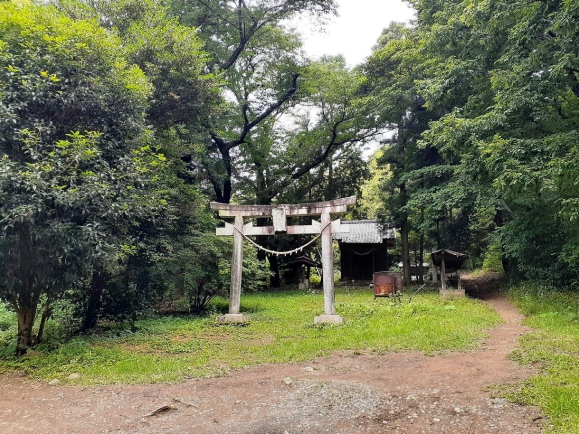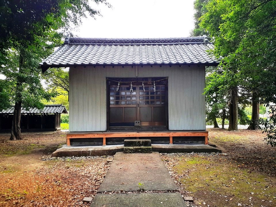 国道254号線沿いは民家等立ち並んでいるが、社に通じる道は道路幅も細く、あまり住宅等も多くない。また社自体も国道から離れている斜面上にある為、あまり目立たない。ひっそりと慎ましく佇んでいる印象。