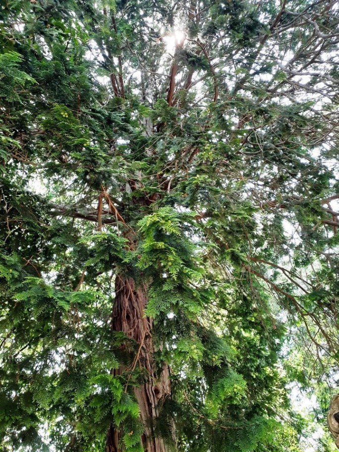 参道突き当たり地点に聳え立つご神木らしい巨木