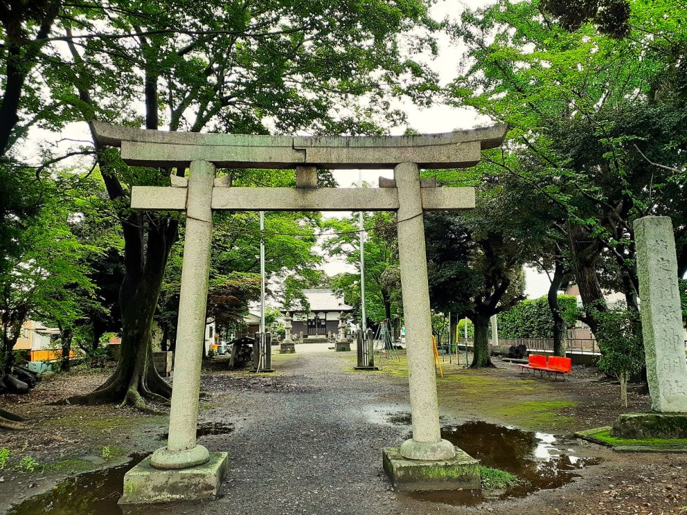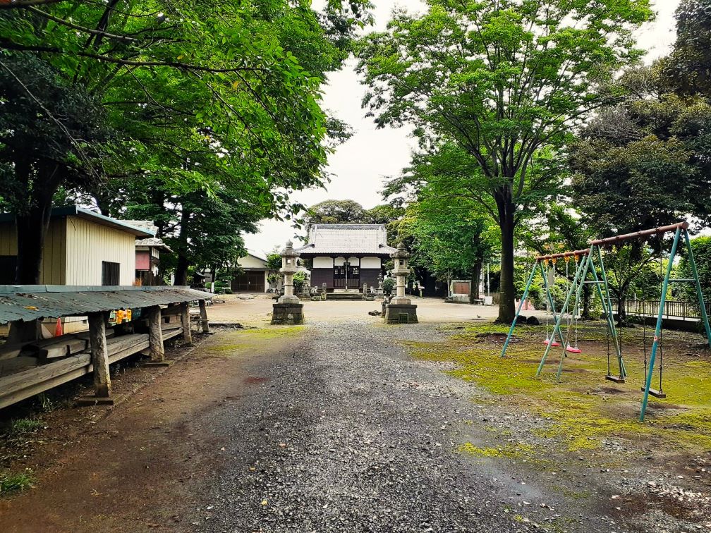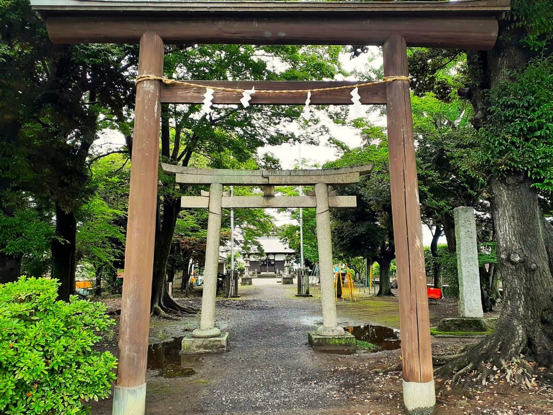 利根川と福川に挟まれた俵谷地域。嘗てこの旧俵瀬村は、北に流れる利根川には堤がなく、南には中条堤がそびえ、利根川の増水のたびに水が滞留しがちな「水場」の村であったようだ。ながらく水害と闘ってきた俵瀬の地の鎮守社ならではの配置に思えた。
