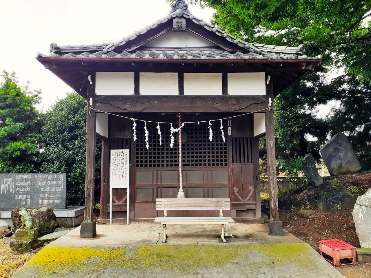 鳥居を過ぎると左側に石碑がある(写真左)。但し解析が難しく断念。そのまま社方向に進む中で、左側にある俵瀬コミュニティセンターを左手に見ながら(同右)二の鳥居方向に進む。