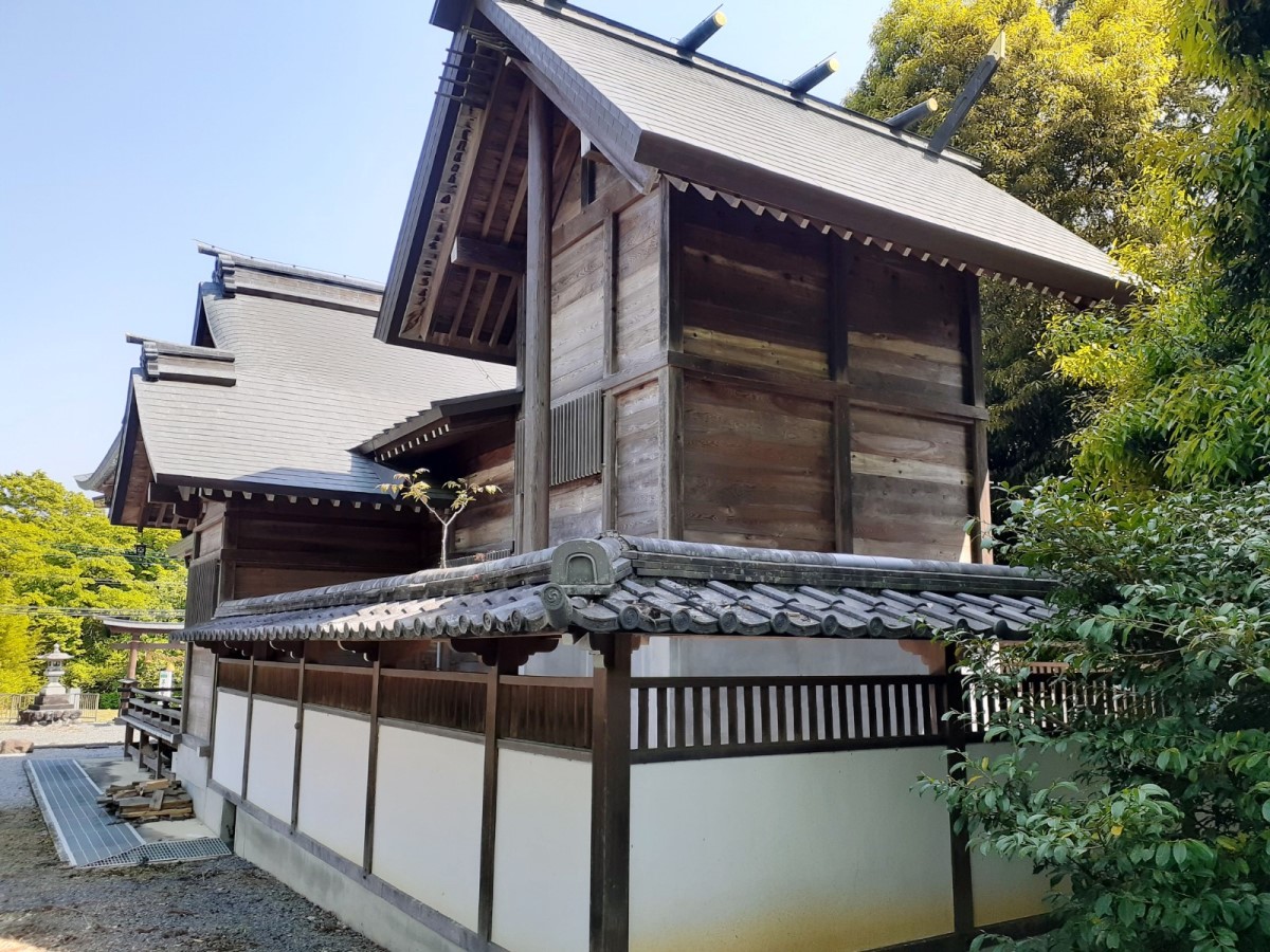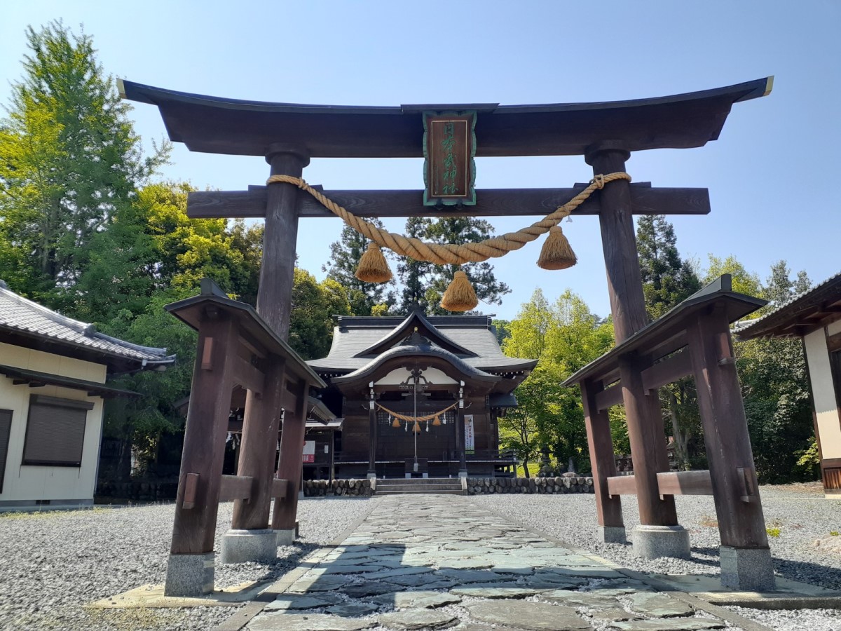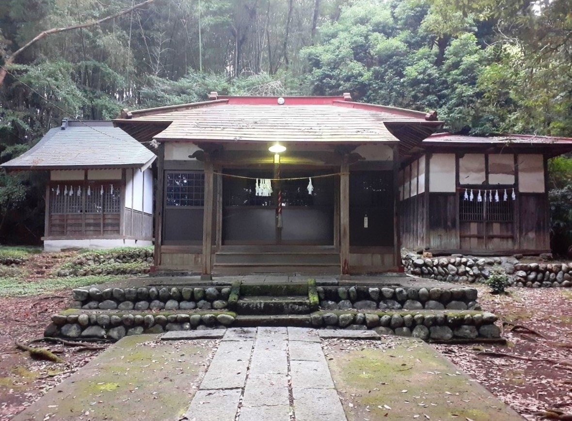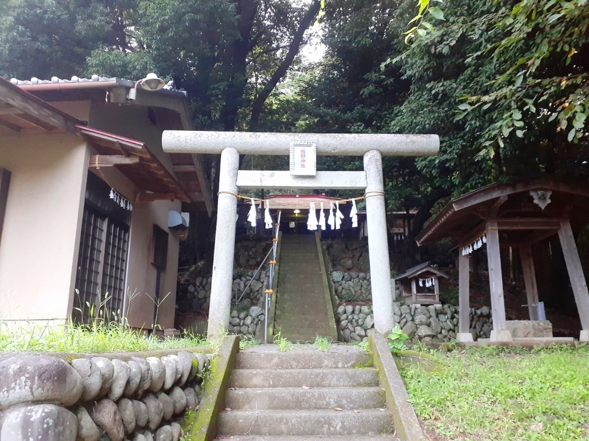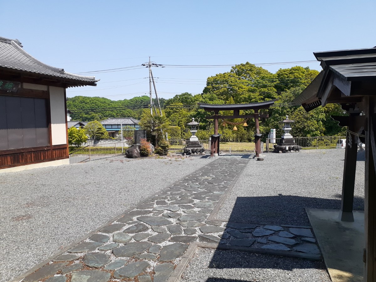 西古里矢弓神社は本田八幡神社の南3.5㎞程、埼玉県道69号深谷嵐山線の道路沿いに鎮座している。鎮座地は県道に対して左側に面する高台にあり、駐車場は社の北西側で、社号標柱の手前に数台停められるスペースがある。当日は小雨が降る中での参拝となったが、風情もあり、事前には新田氏関連の社としての由緒等も確認していたので、厳かな気持ちで参拝に臨めた。