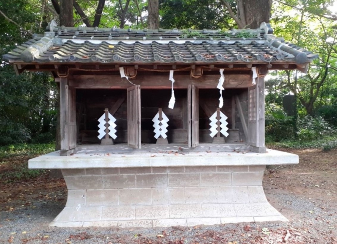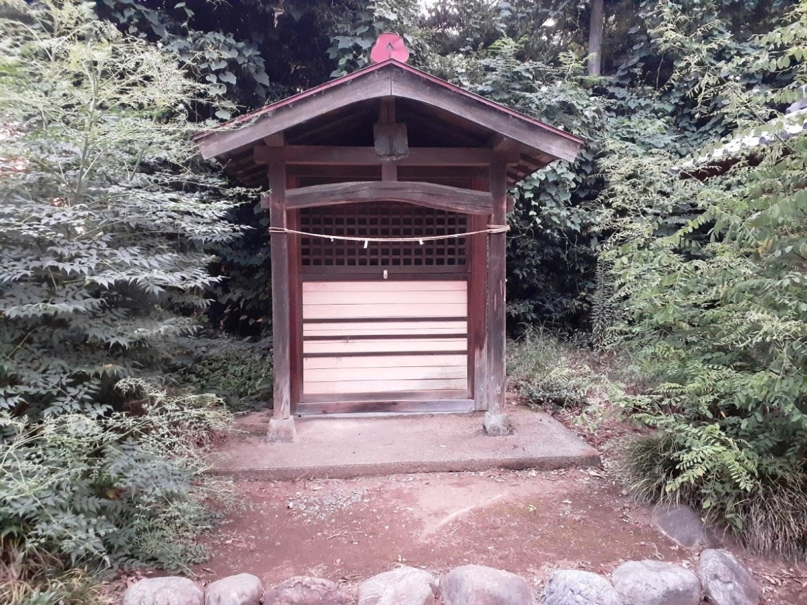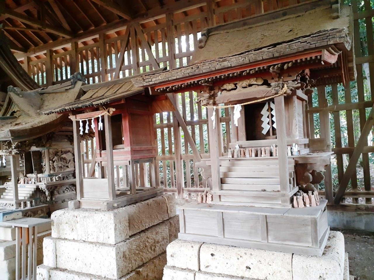 社殿手前で左側にある合祀社。詳細不明。 社殿の左側奥に鎮座する境内社。詳細不明。