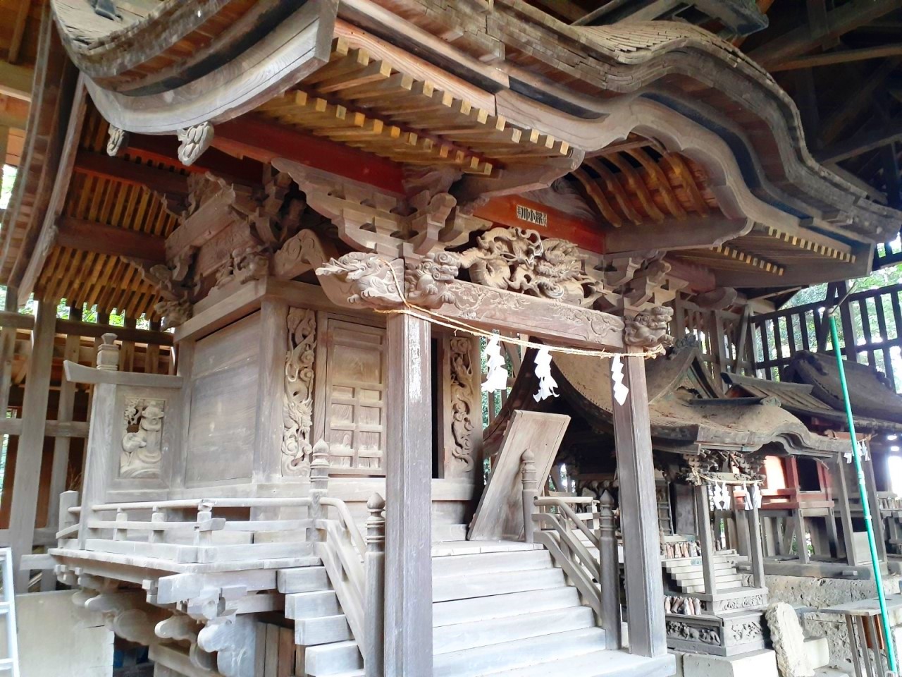社殿の隣には境内社を保管している社あり。名称分からず。
