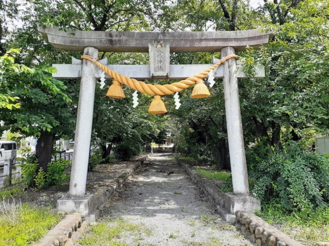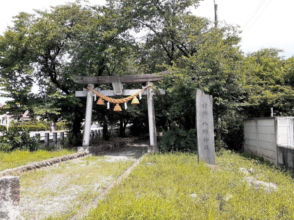 折之口八幡神社は櫛引台地面に鎮座している。進路の途中までは前項「境玉津島神社」と同じだが、そのまま道なりに800m程進むと、左側には折之口ふれあい公園があり、その公園の東側で隣接するように折之口八幡神社の正面鳥居がある。
