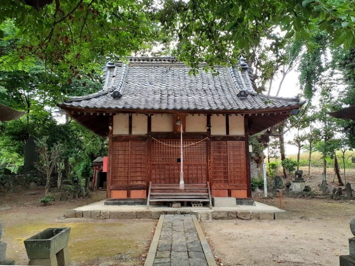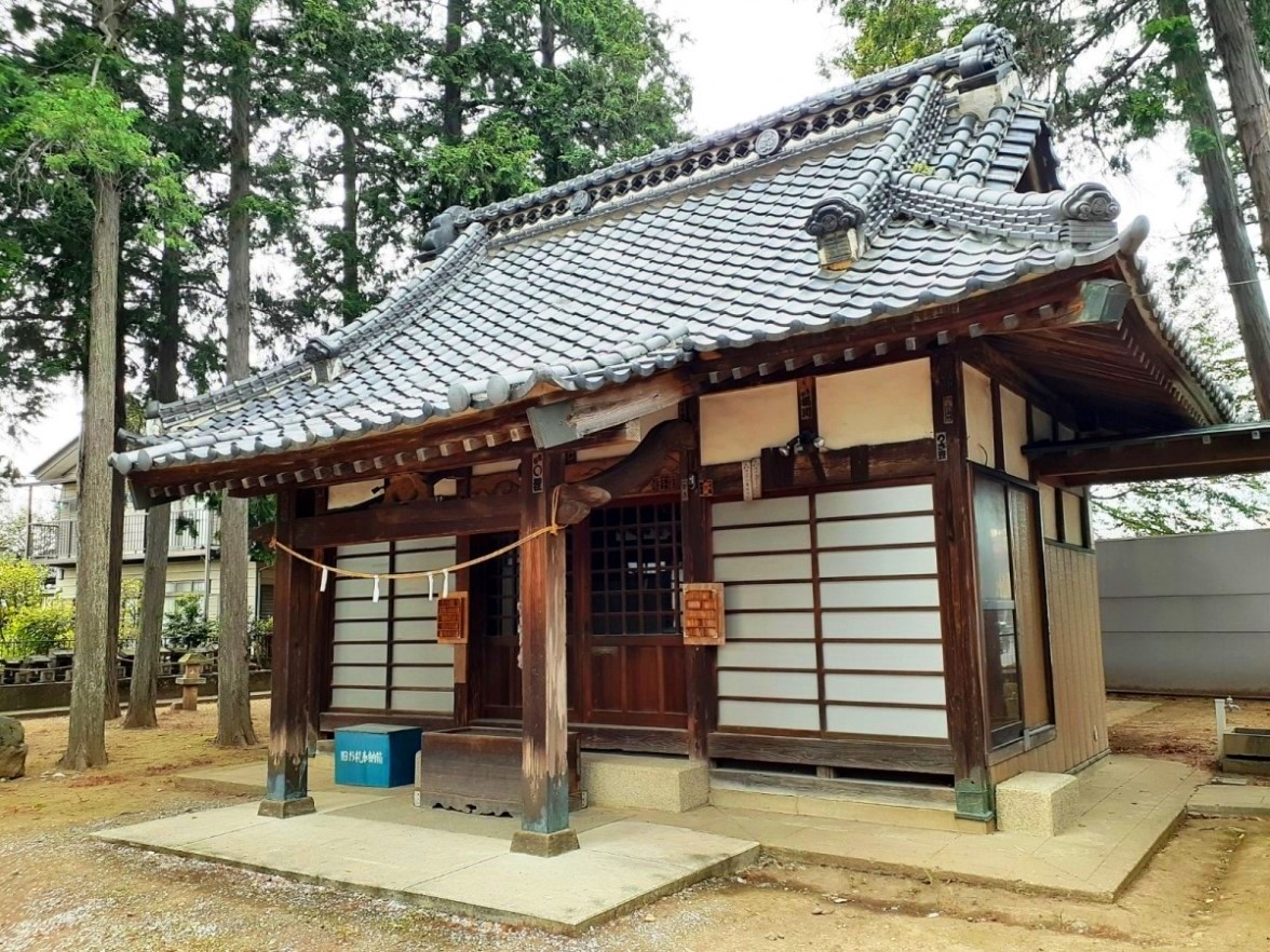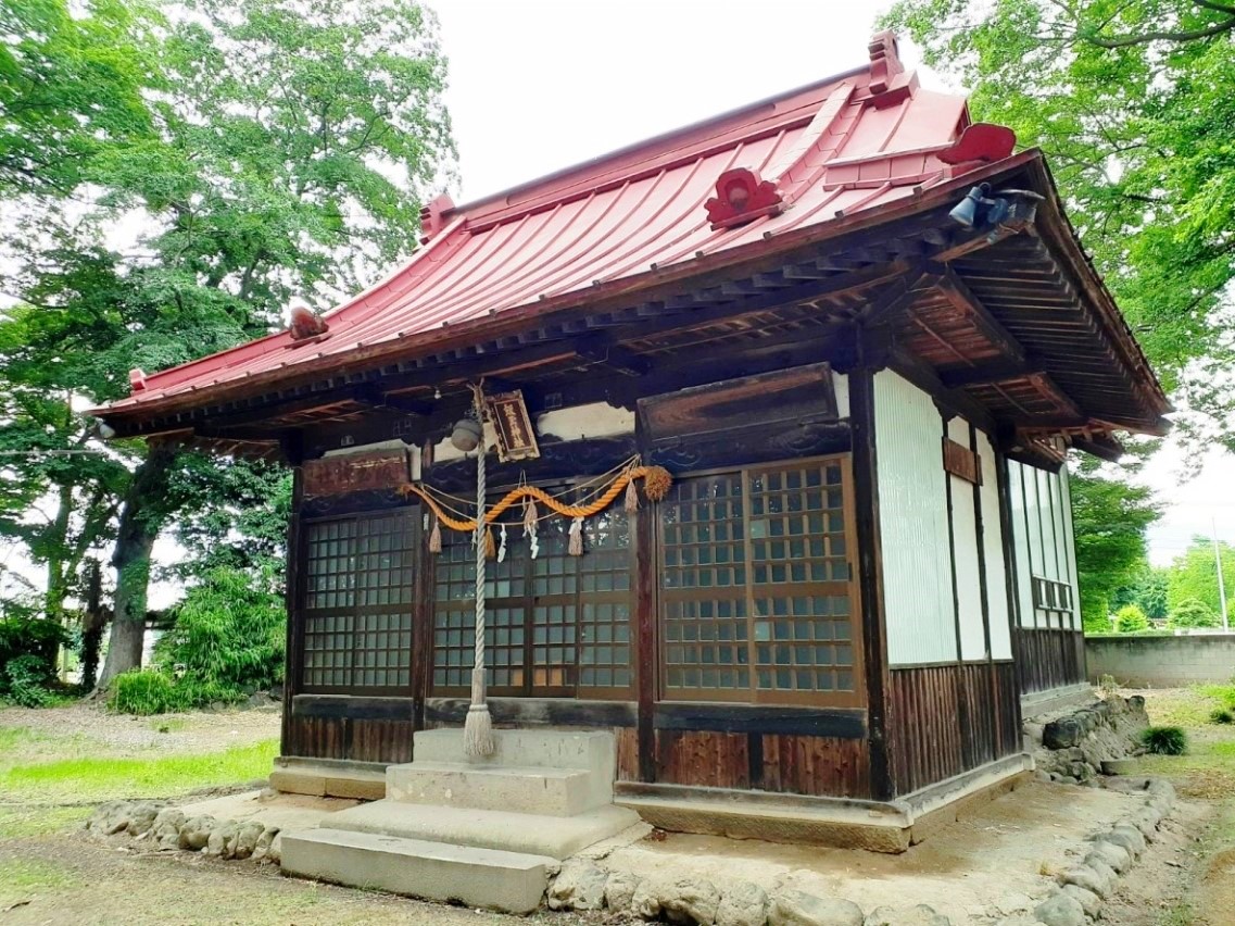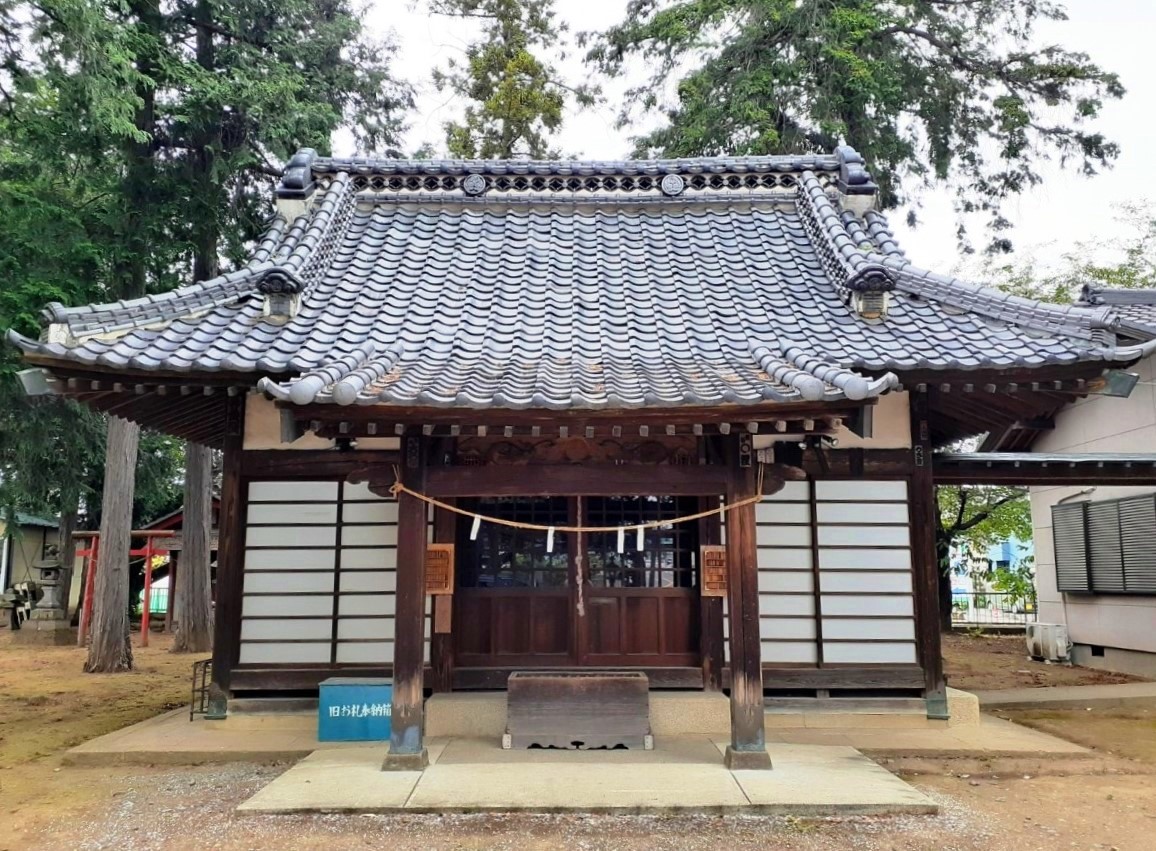 當社創立ハ不詳ナレドモ往古室町時代ニハ上野國那波郡那波城主ノ崇敬アリシ社ニシテ神徳遠近ニ輝キシト云フ祭神ハ倉稻魂命ヲ祀ル五穀ノ祖神ナリ舊社地ハ村ノ東方字飯玉ノ地ニアリシヲ天正十八年ニ今ノ地ニ遷ス舊境内ニハ周圍參拾餘尺ノ欅ノ老樹アリシカ明治二十年一月二日燒失セリ建物ハ本殿幣殿拜殿社務所等ノ施設ヲ完備ス