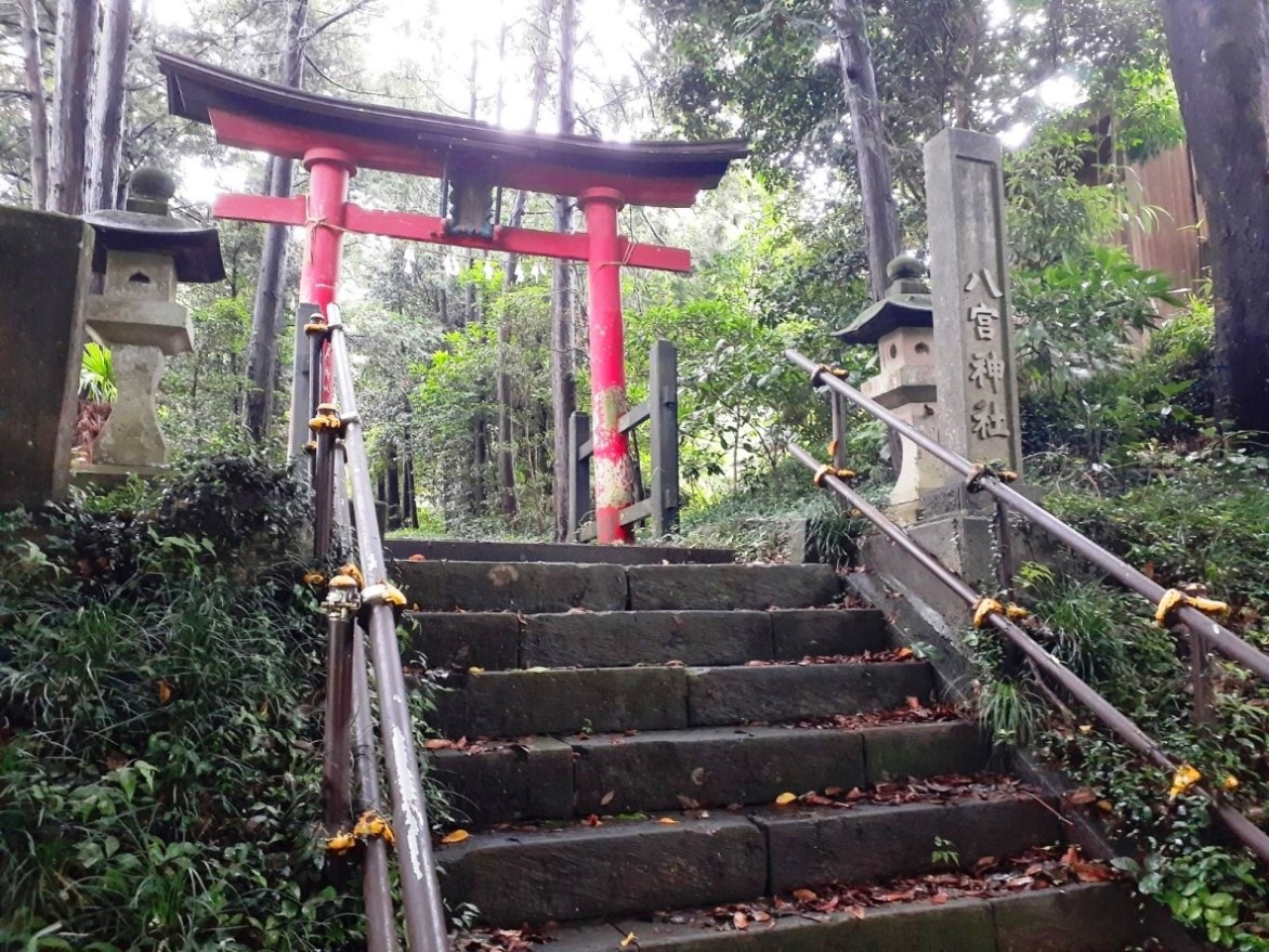 大山咋命を祀る当社は、鎌倉街道上道と呼ばれる街道脇に鎮座する。住宅やゴルフ場などの開発が進み、樹木が次々と伐採される中にあって、当社の境内は杉を主として樹木が多く、緑豊かな環境を守り続けていることから、平成三年には町の保護木の指定も受けている。また、社殿の裏手には、松の大木があったが、近年、松食い虫にやられ、枯死してしまった。かつて、当社の付近は『風土記稿』に「此辺二町許の松林あり、不添の森と云」と載るように、松林であったが、開発や松食い虫の害のため、既に当時の面影はない。