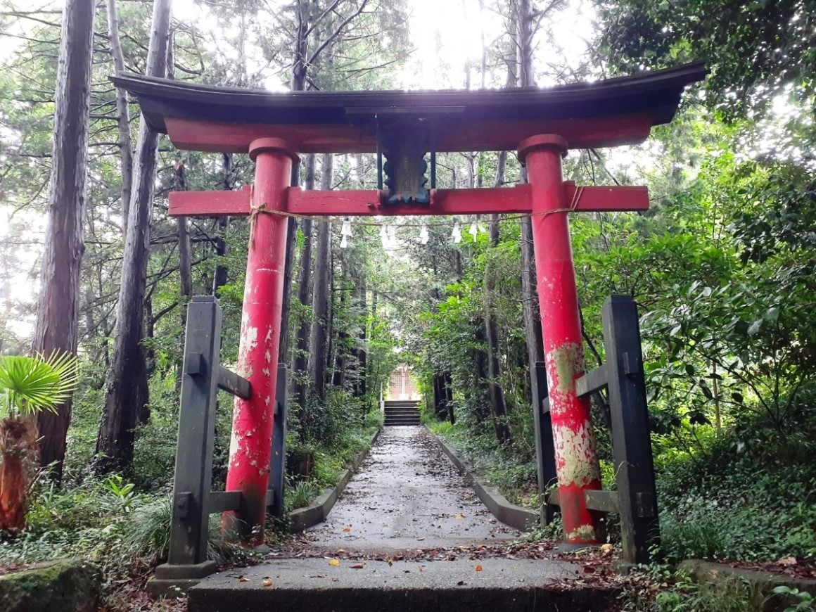 社殿の奥にも境内社あり。稲荷社か。 社殿から鳥居方向を撮影。