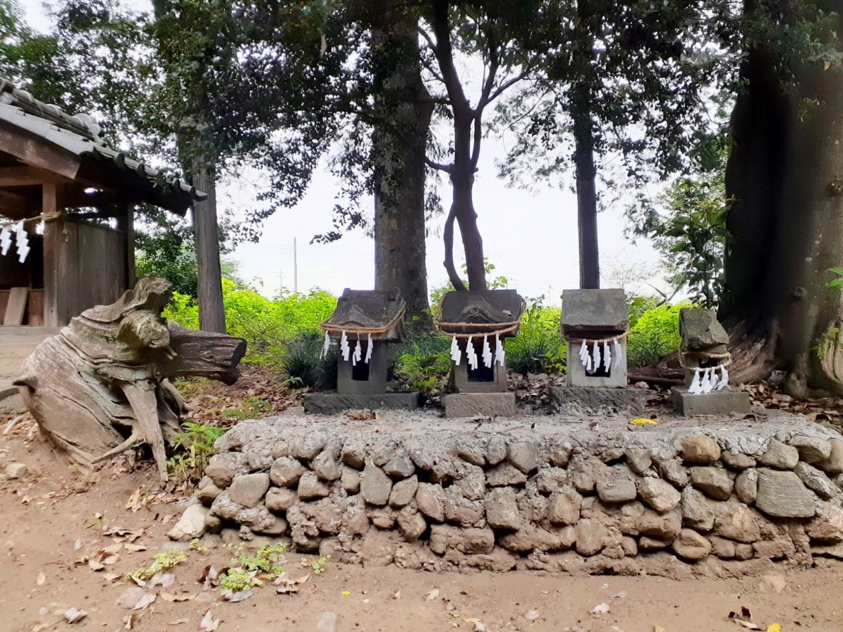 社殿の左側に並んで鎮座する末社群。詳細は分からず。