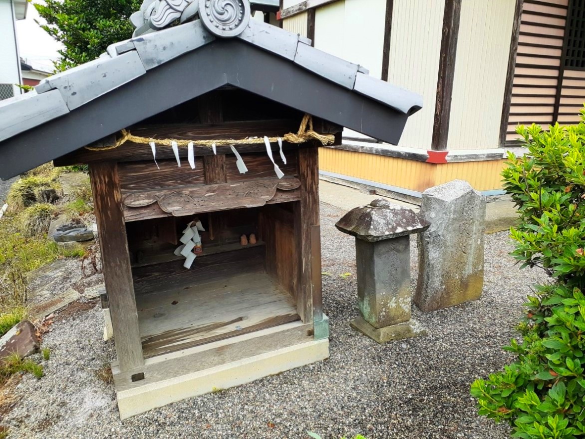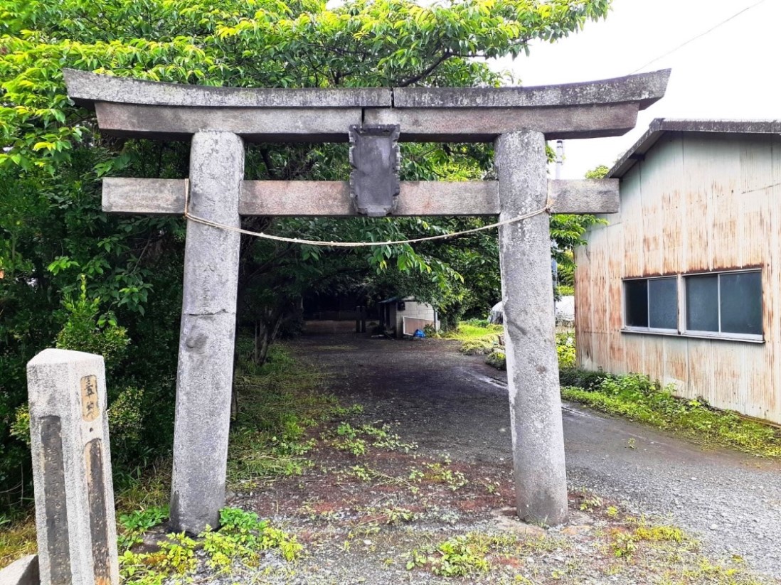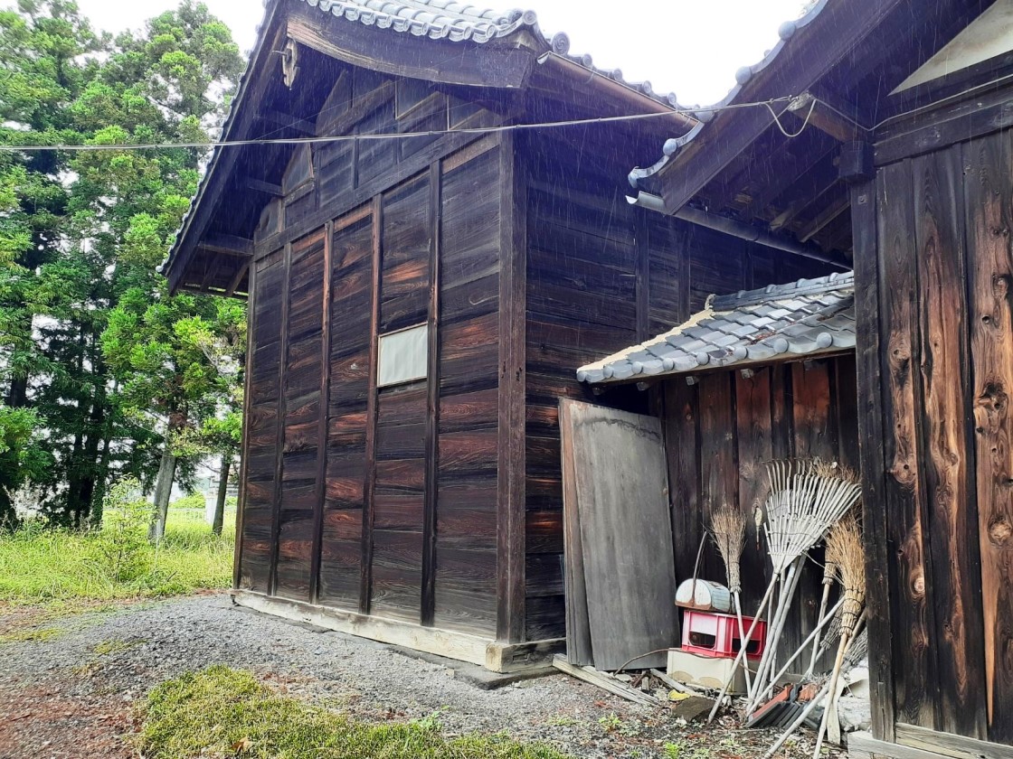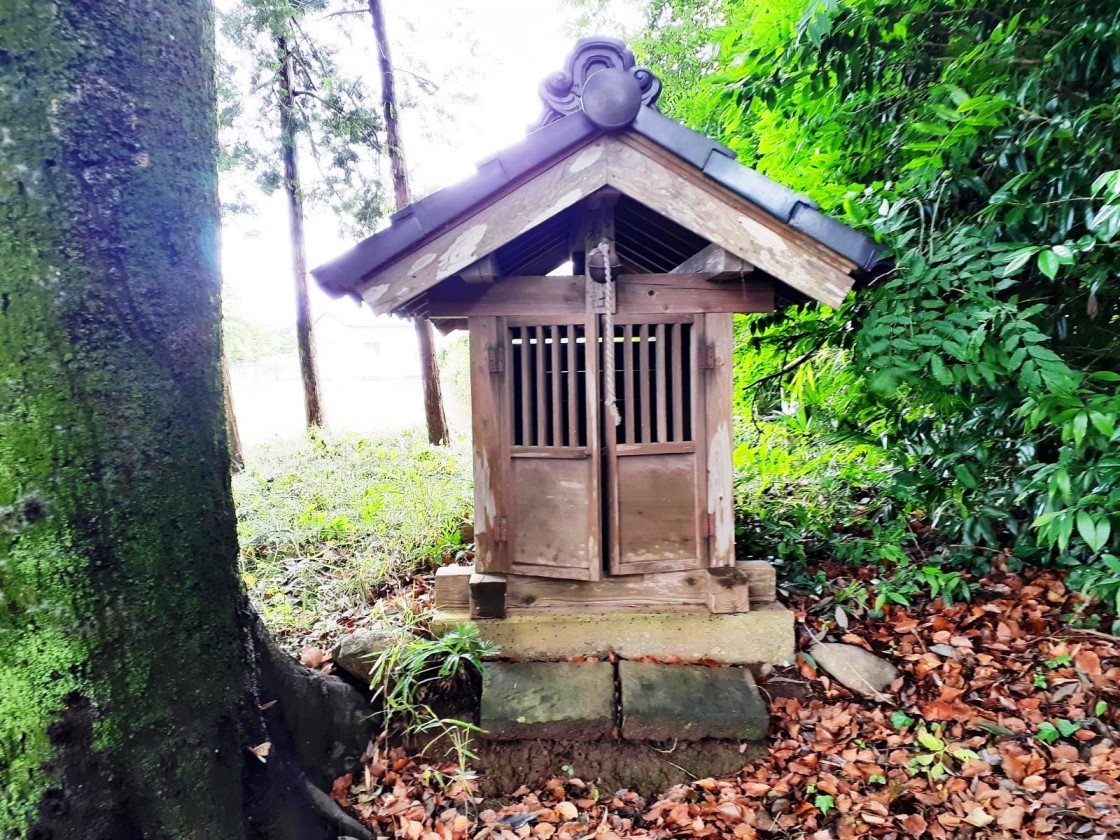 当社は、更に、文久二年(一八六二)には本殿、慶応三年(一八六七)には拝殿が造営されたと伝えられ、明治四年に村社となった。境内は、集落の北端近くにあり、樹齢三〇〇年以上といわれる本殿裏の神木の杉に、歴史の古さが感じられる。当社の境内には、本殿と拝殿の造営に伴って奉納されたと思われる手水鉢が一基ずつあるが、そのうち慶応銘のものは手水鉢には珍しく猫足である。