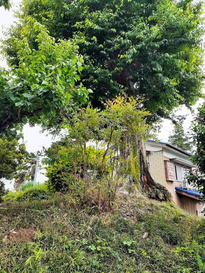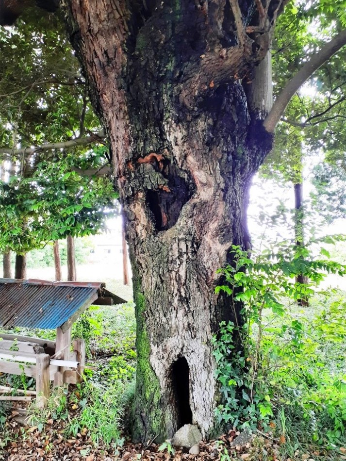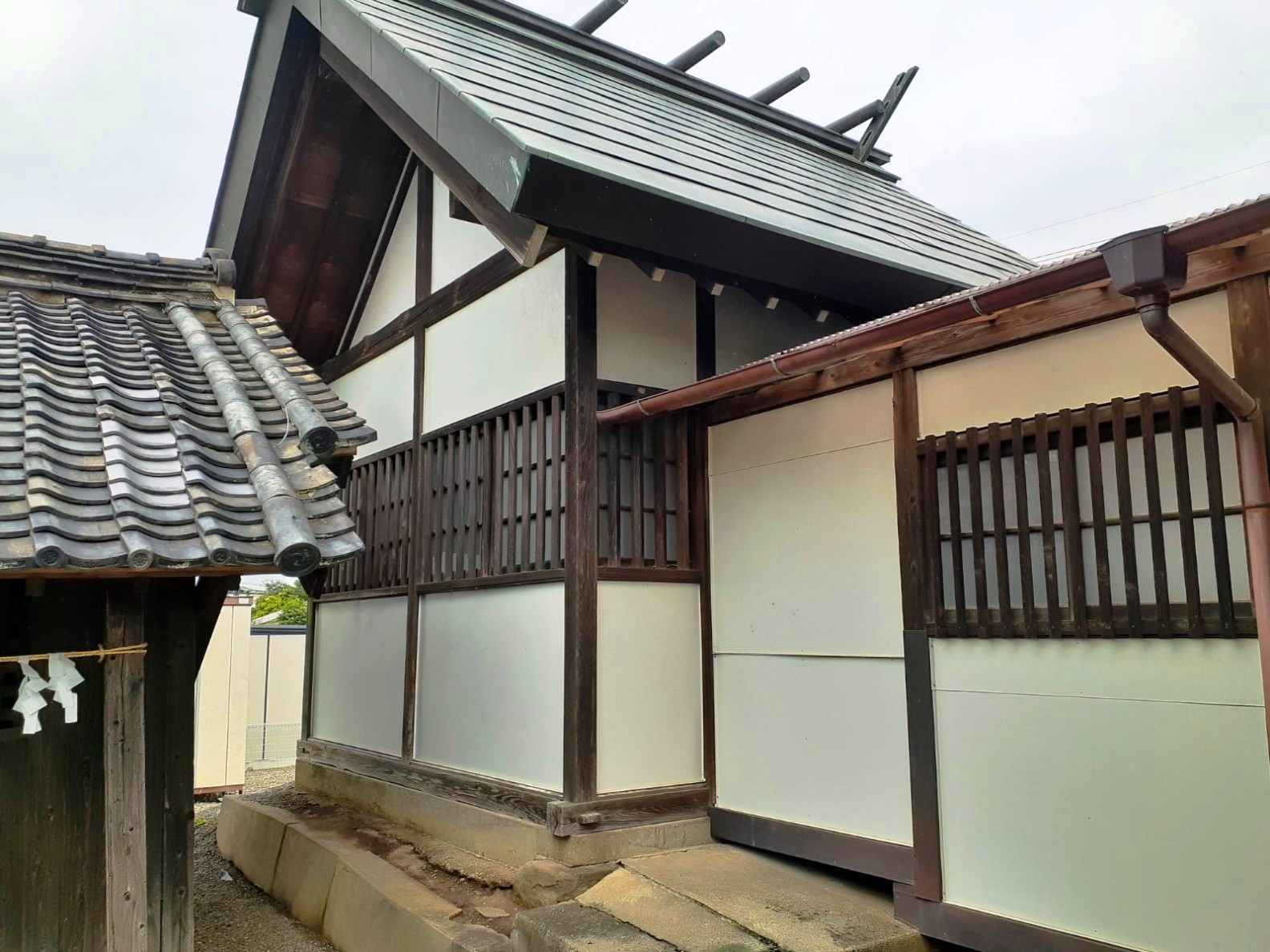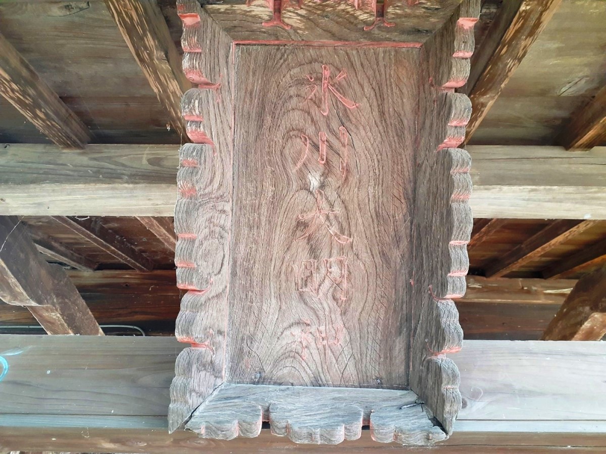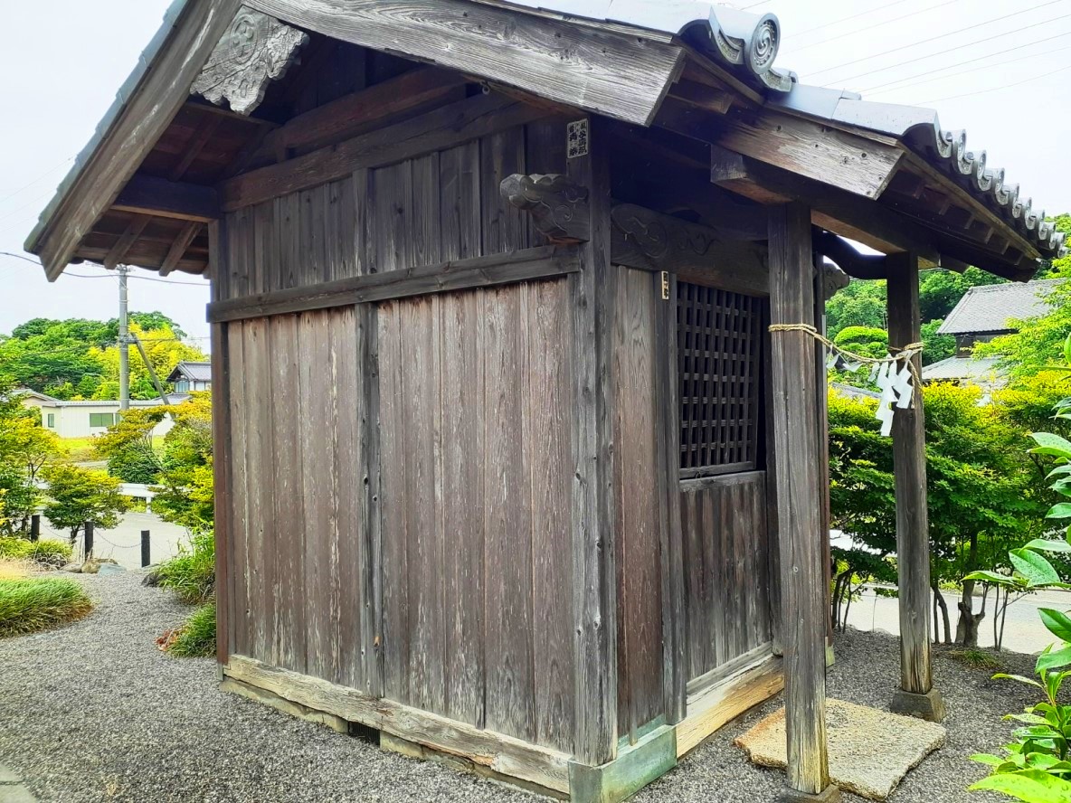 当社は、更に、文久二年(一八六二)には本殿、慶応三年(一八六七)には拝殿が造営されたと伝えられ、明治四年に村社となった。境内は、集落の北端近くにあり、樹齢三〇〇年以上といわれる本殿裏の神木の杉に、歴史の古さが感じられる。当社の境内には、本殿と拝殿の造営に伴って奉納されたと思われる手水鉢が一基ずつあるが、そのうち慶応銘のものは手水鉢には珍しく猫足である。