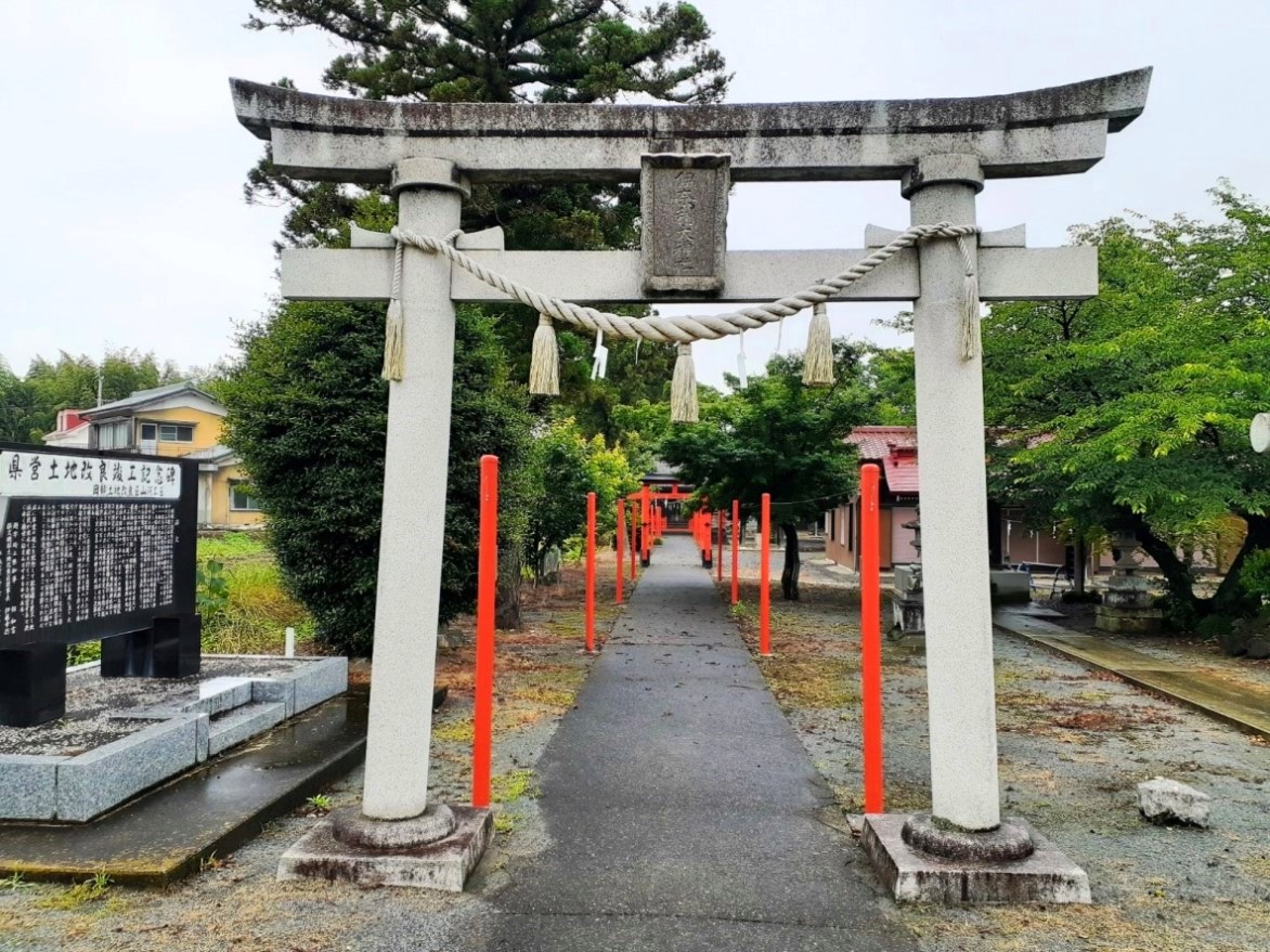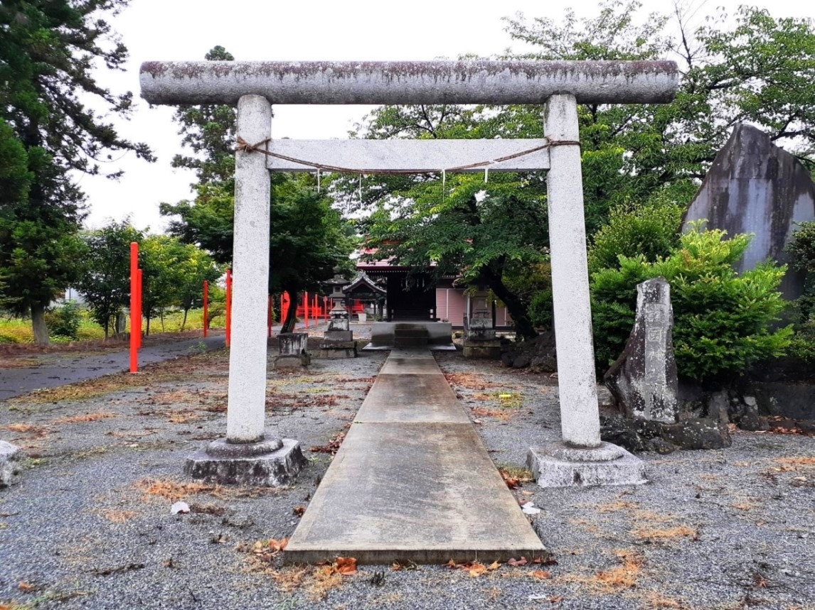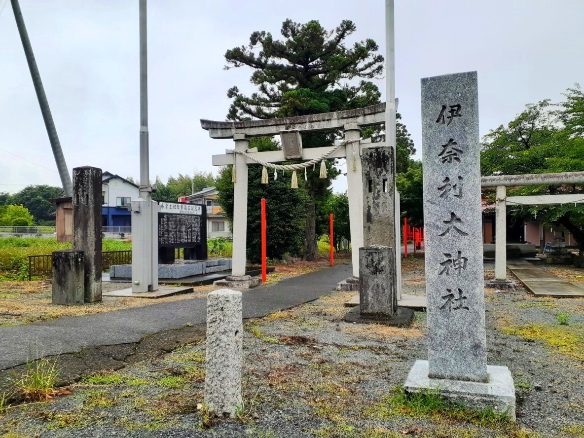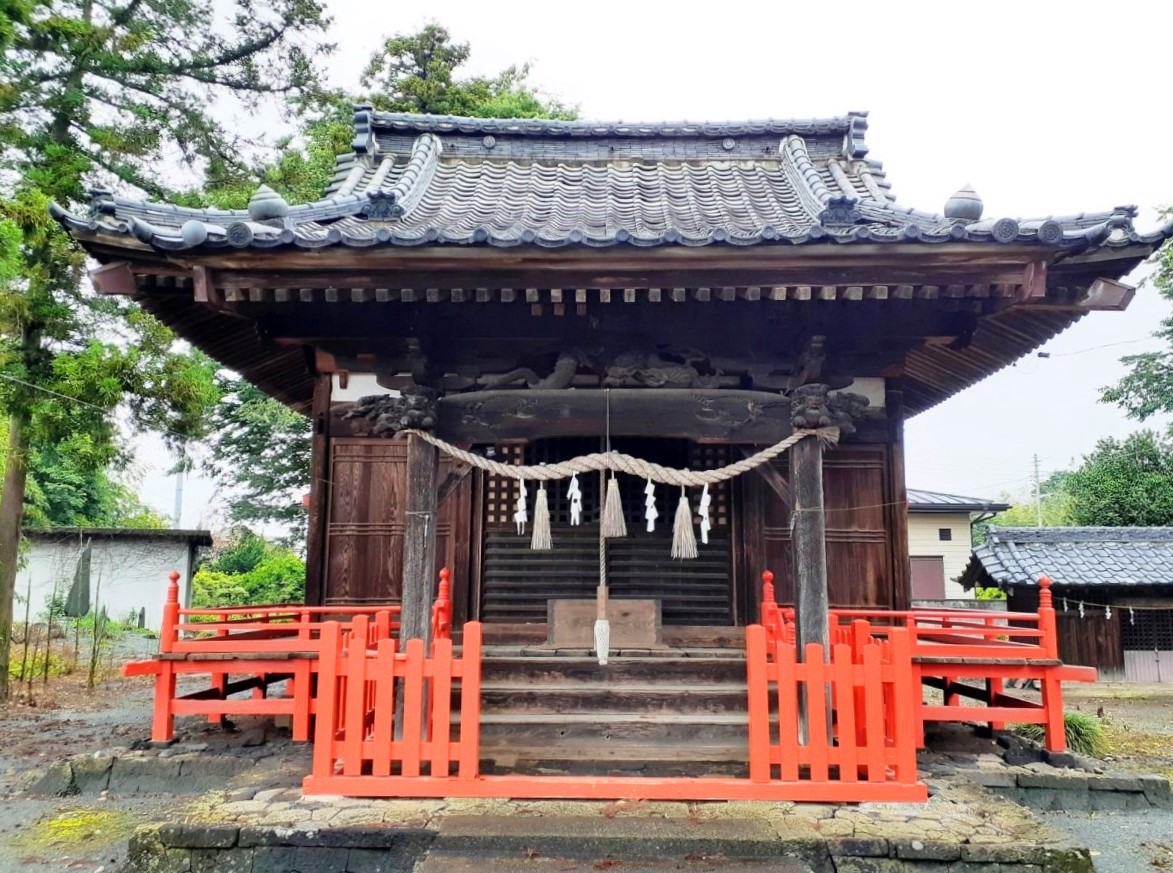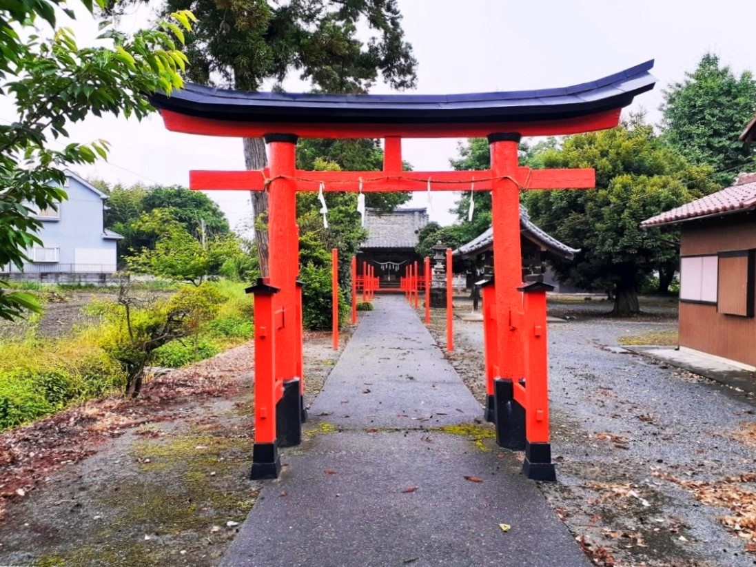 沿革 当社の創建年代は明らかではないが、約0.7km西方の字茶臼山に位置する伊奈利塚古墳の上に祭られていたものをいつの頃か現在地に移したと伝える。