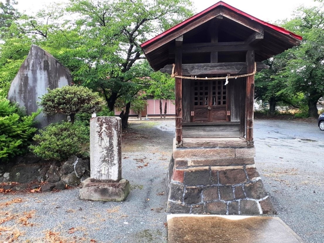社に隣接した社務所兼山河会館があり、会館手前には広大な駐車スペースも確保されており、そこに停めて参拝を行う。