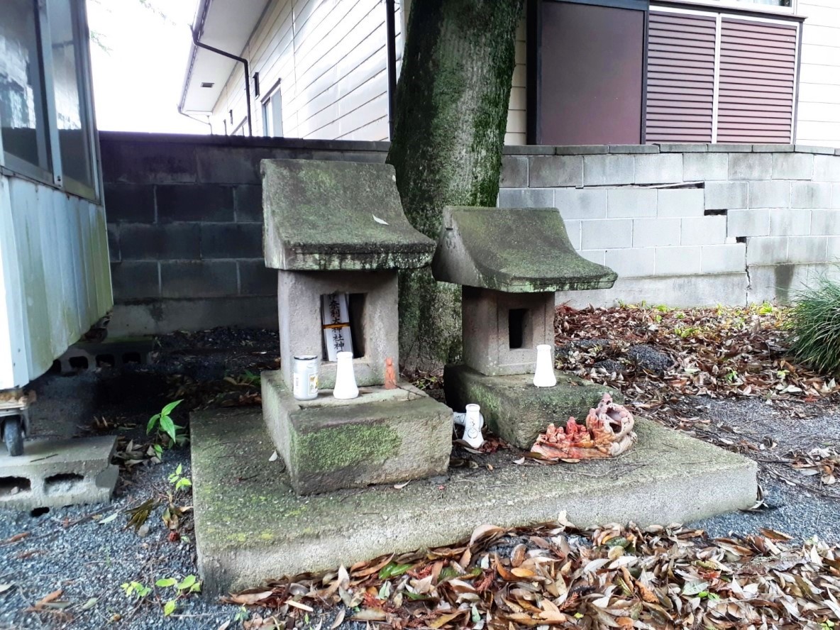 社殿奥に鎮座する石祠。詳細不明 富士御嶽塚か