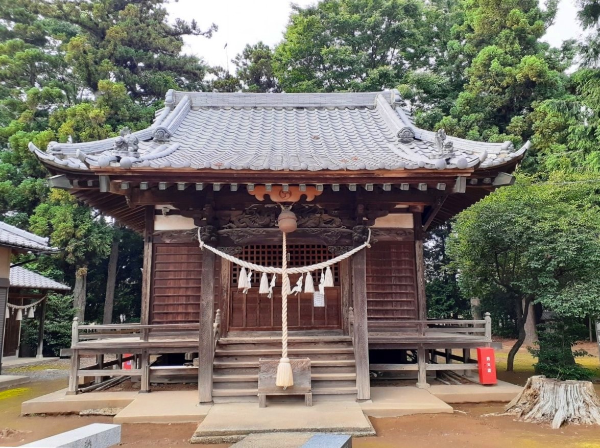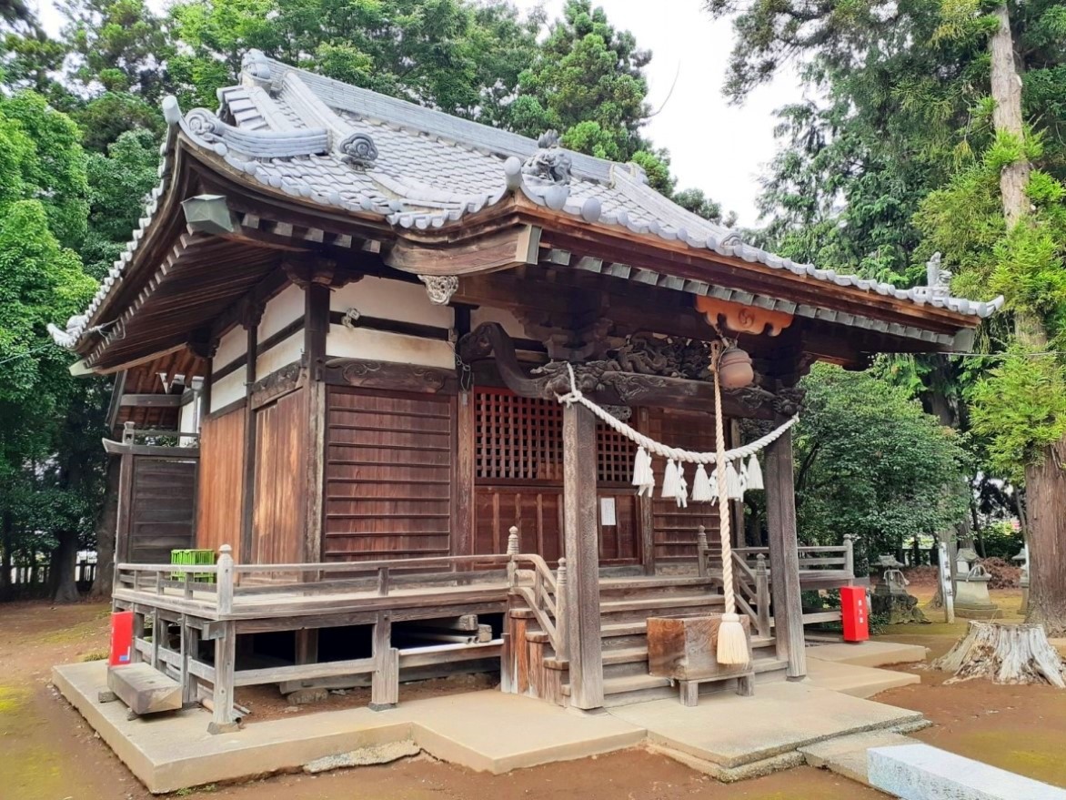 旧岡村字新田(深谷市岡)鎮守。境内社は多く鎮座しているので、旧村社かもしれないが、由来等確認しても分からなかった為、社格は不明とした。