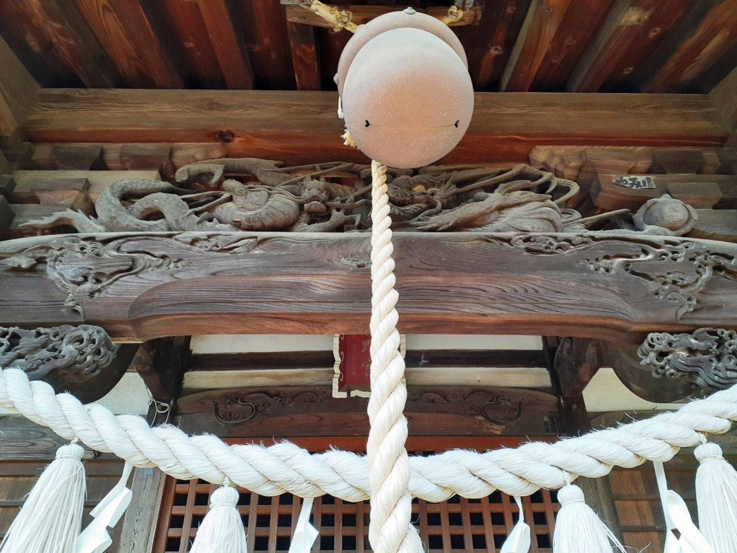 拝殿の向拝部には凝った龍の彫刻も施されている。