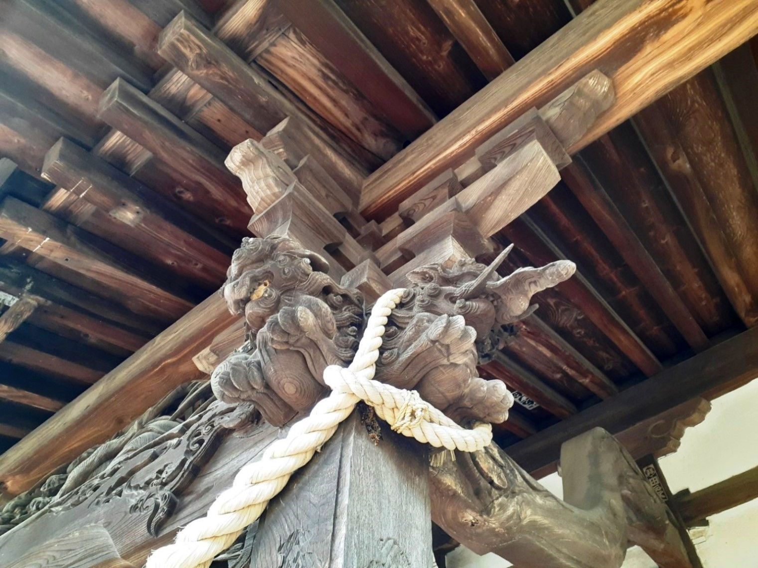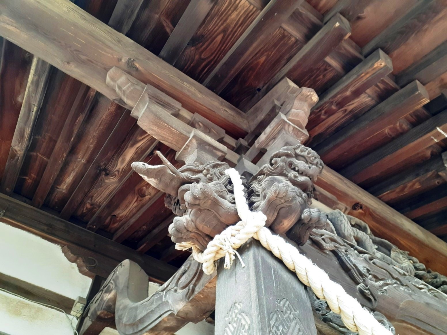 拝殿の向拝部・木鼻部にも何気に緻密な彫刻が施されている。