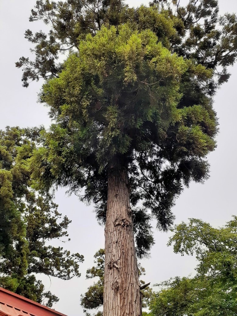 社殿右側手前にはご神木が聳え立つ(写真左・右)