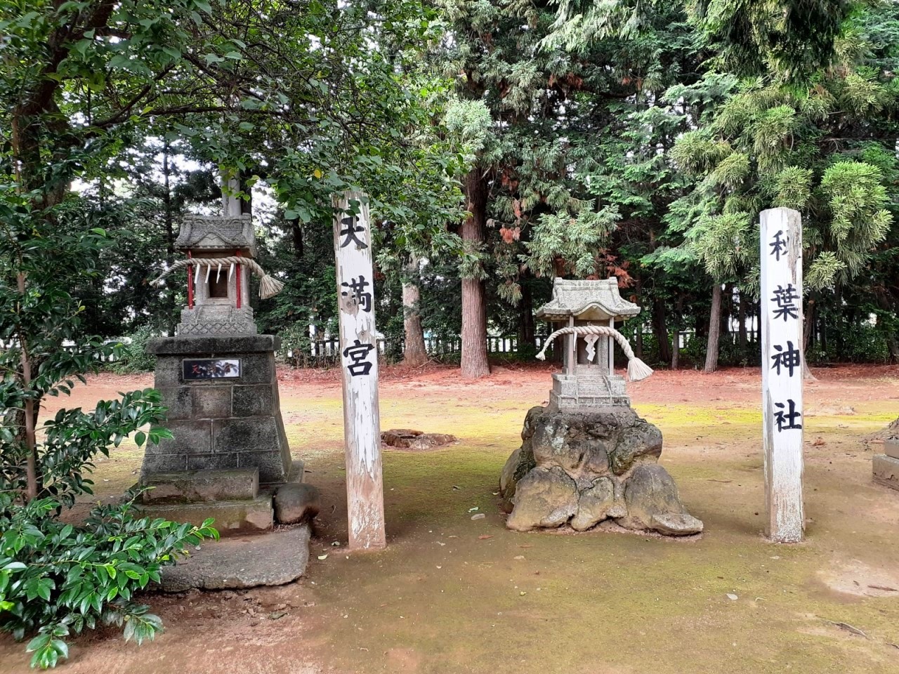 社殿左側奥には菅原神社。手前の石祠は不明。  社殿右側に鎮座する八坂神社と大黒天2基