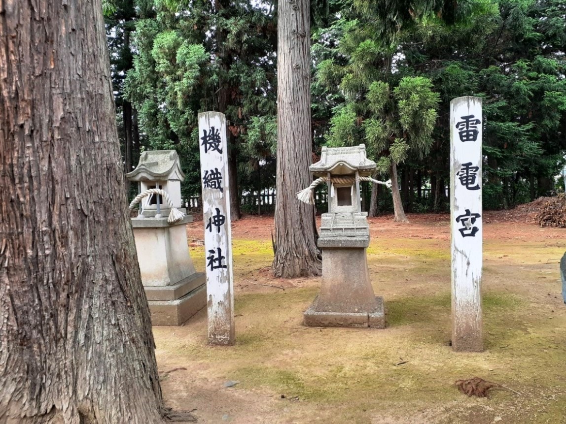 左から天満宮・秋葉神社・機織神社・雷電宮