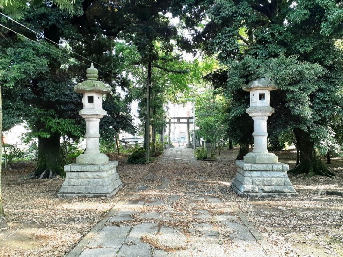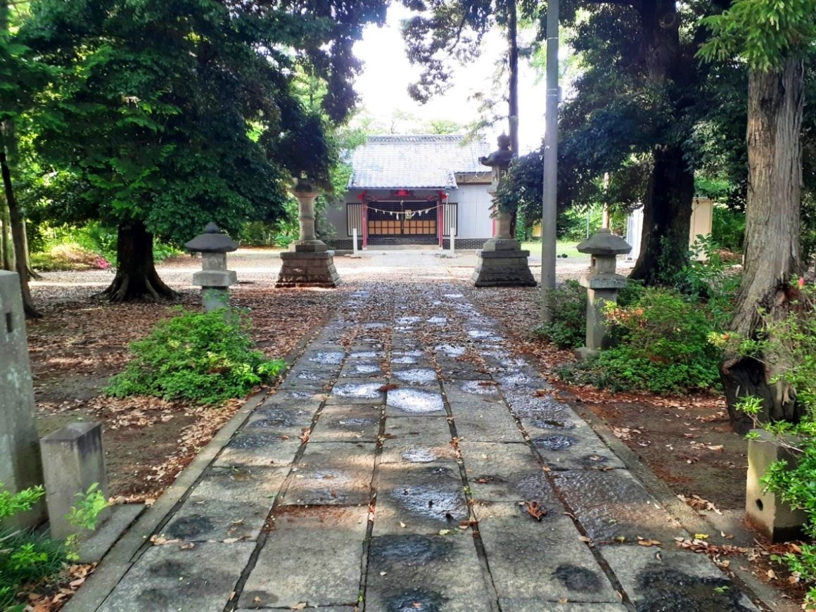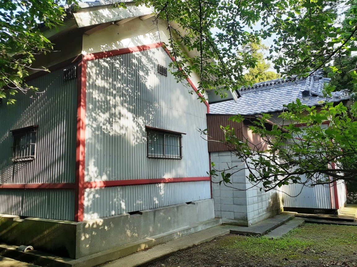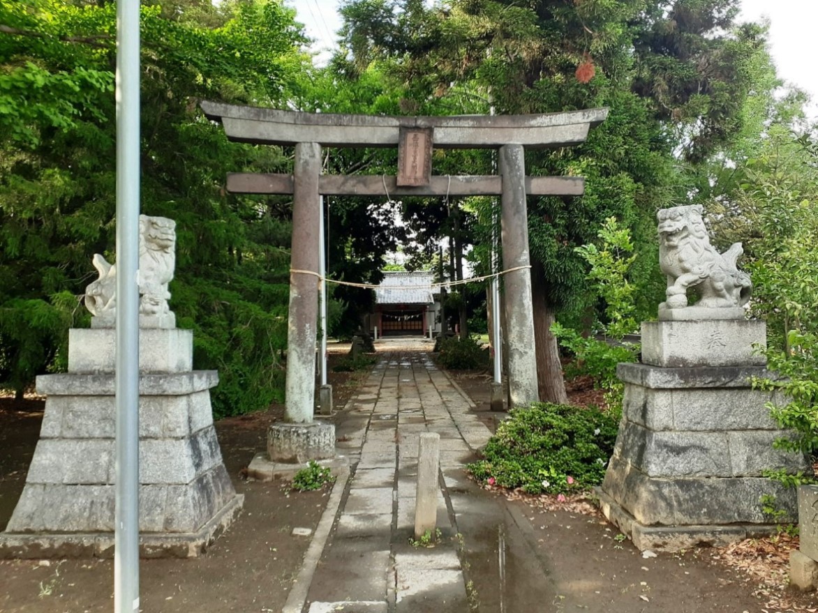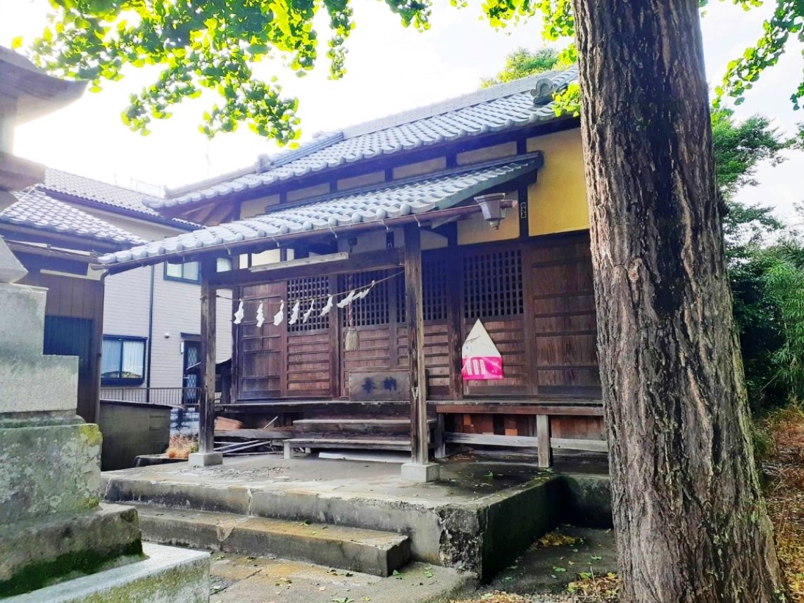 玉作地区の中央部を南北に貫通する「みどりの道」を境にして、西側が本田、東側が新田と呼ばれ、当社は、本田の集落の北端部に、荒川支流の和田吉野川の流れを背に鎮座し、その社殿は水害を避けるために水塚の上に築かれている。