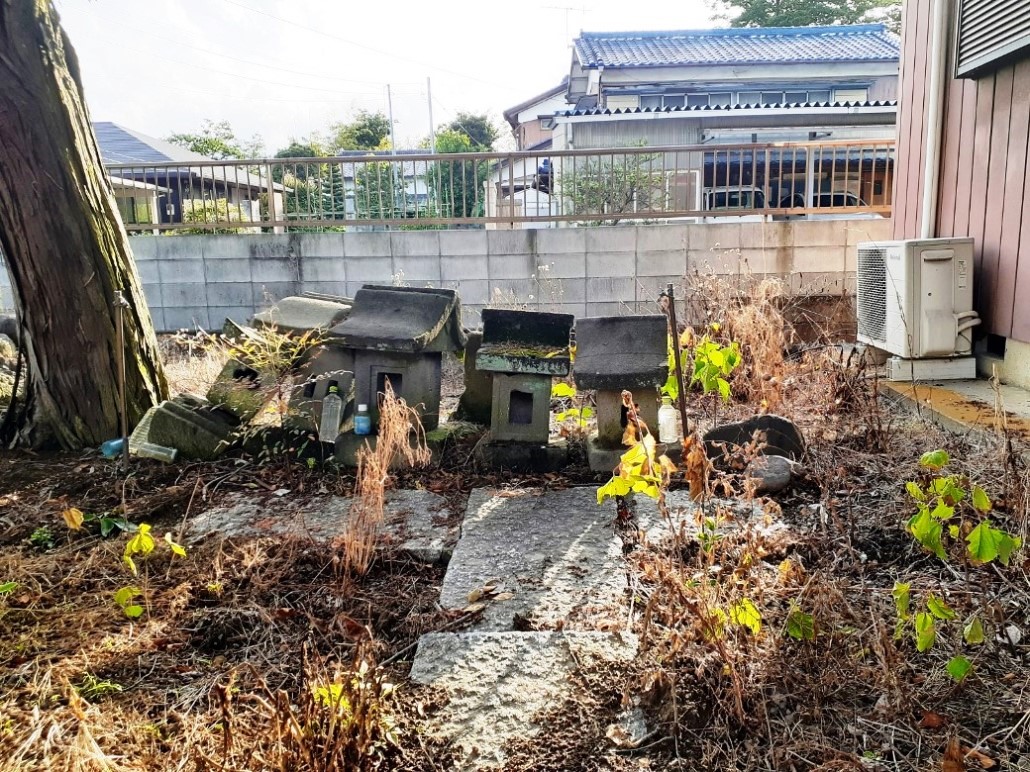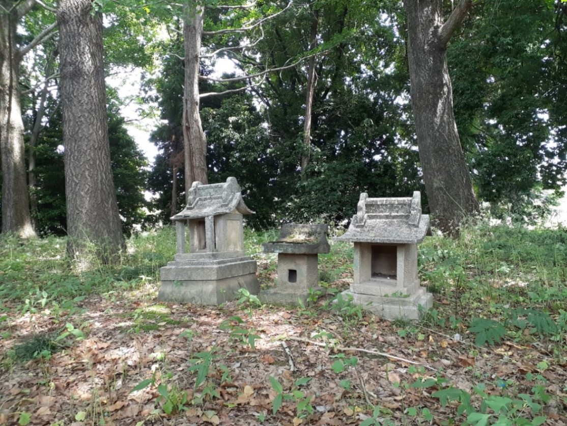 参道左側には石碑(写真左)や末社の石祠(同右)が並んでいる配置となっている。