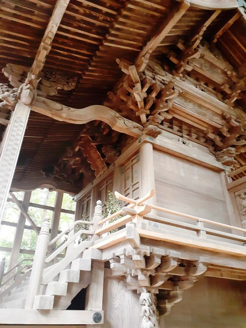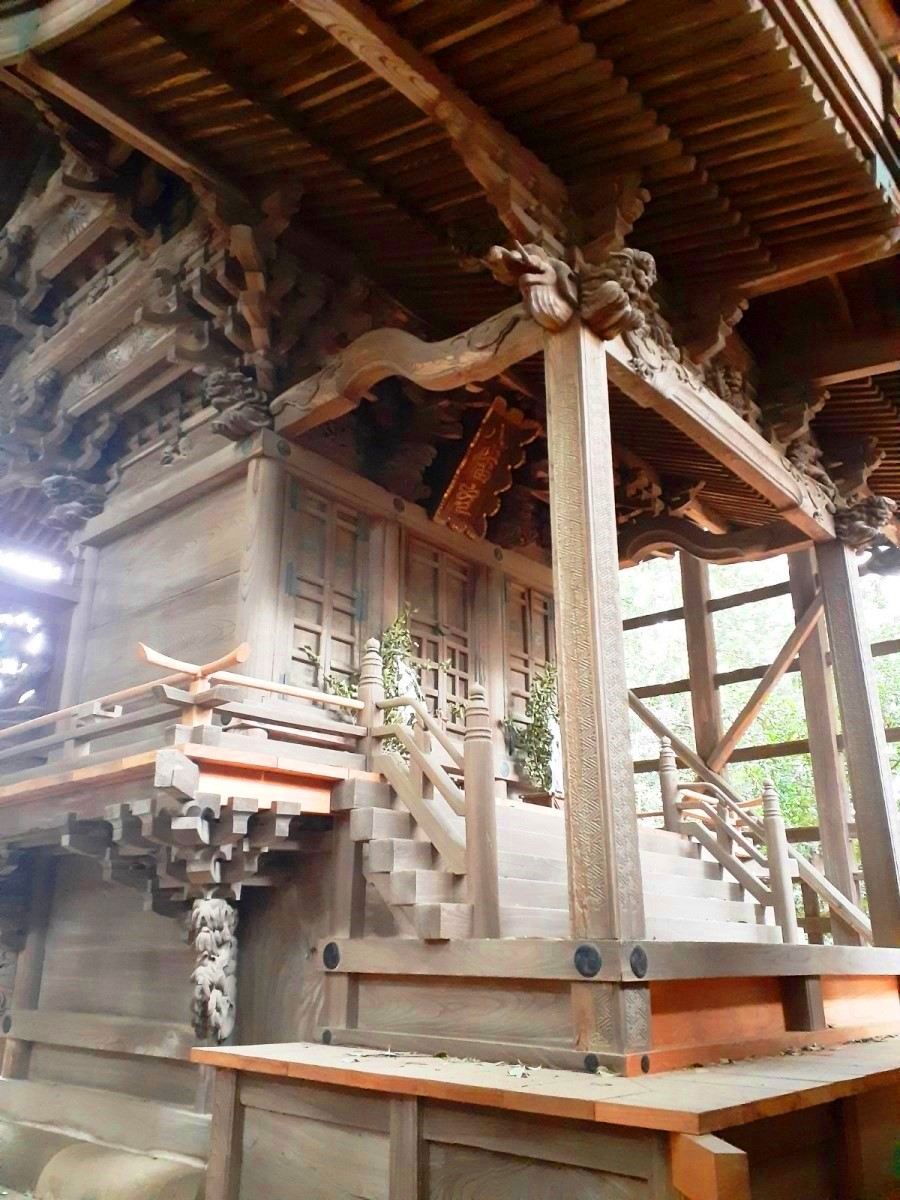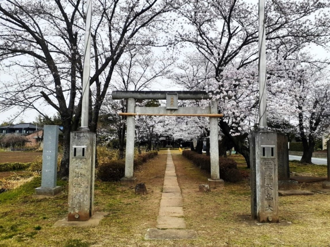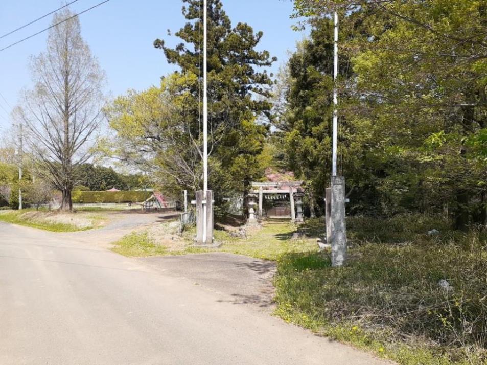 「ふれあい農園谷津の里」の駐車スペースに車を停めて参拝を行う。天候も清々しいほどの晴天の日よりで、足取りも軽い。駐車スペースから北側に進む道路沿いに社は鎮座するが、新緑が進む周囲の風景を眺めながらの散策もまた良いものだ。