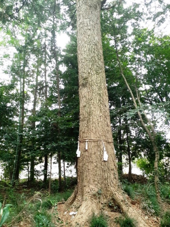 ところで神社参拝後、自宅での編集中に知ったことが2点ある。一点は「福田石」である。武蔵丘陵森林公園内には「福田岩石切り場跡」があるが、この「福田石」は、褶曲岩盤と言われた淡緑色の斜長流紋岩質凝灰岩で、加工しやすい特性もある為、石垣の切石や石燈籠など土木用材として切り出されていて、福田地区内の字大木で大谷石に似た荒粒の凝灰岩が切り出され、「福田石」として販売されていたが、昭和46年あたりまで採掘されていたという。