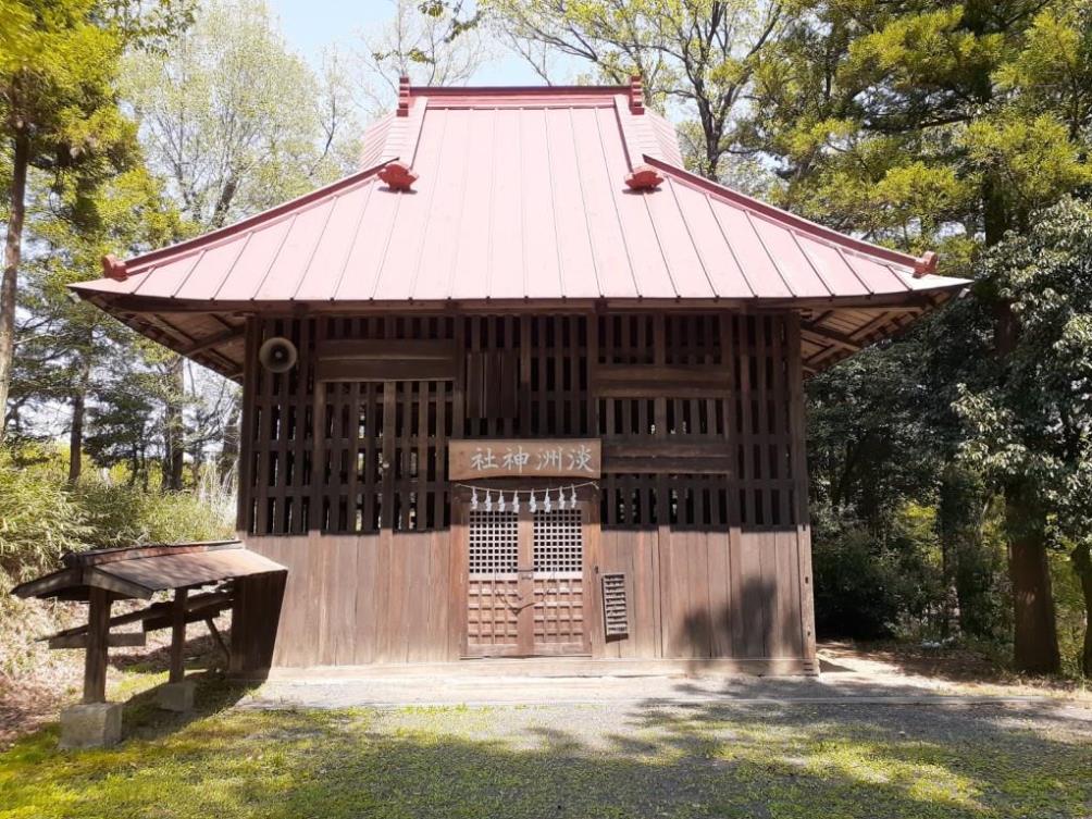 「埼玉の神社」によれば、淡洲神社には諸説あり、安房国一ノ宮の后神を杷った式内社「后神天比理乃咩神社(大社で一元来は洲神と称した)」に由来するというものと、近世に流行した淡島信仰によるとする説である。当社の場合はその双方が考えられる。洲が島と同義であることから、後に淡島信仰が入りやすかったのであろう。この信仰は、女性の病気平癒・安産・良縁などの幸福祈願で、和歌山県加太の加太神社もしくは同県の方に鎮座する淡島神社から修験の活動により全国にもたらされたという。