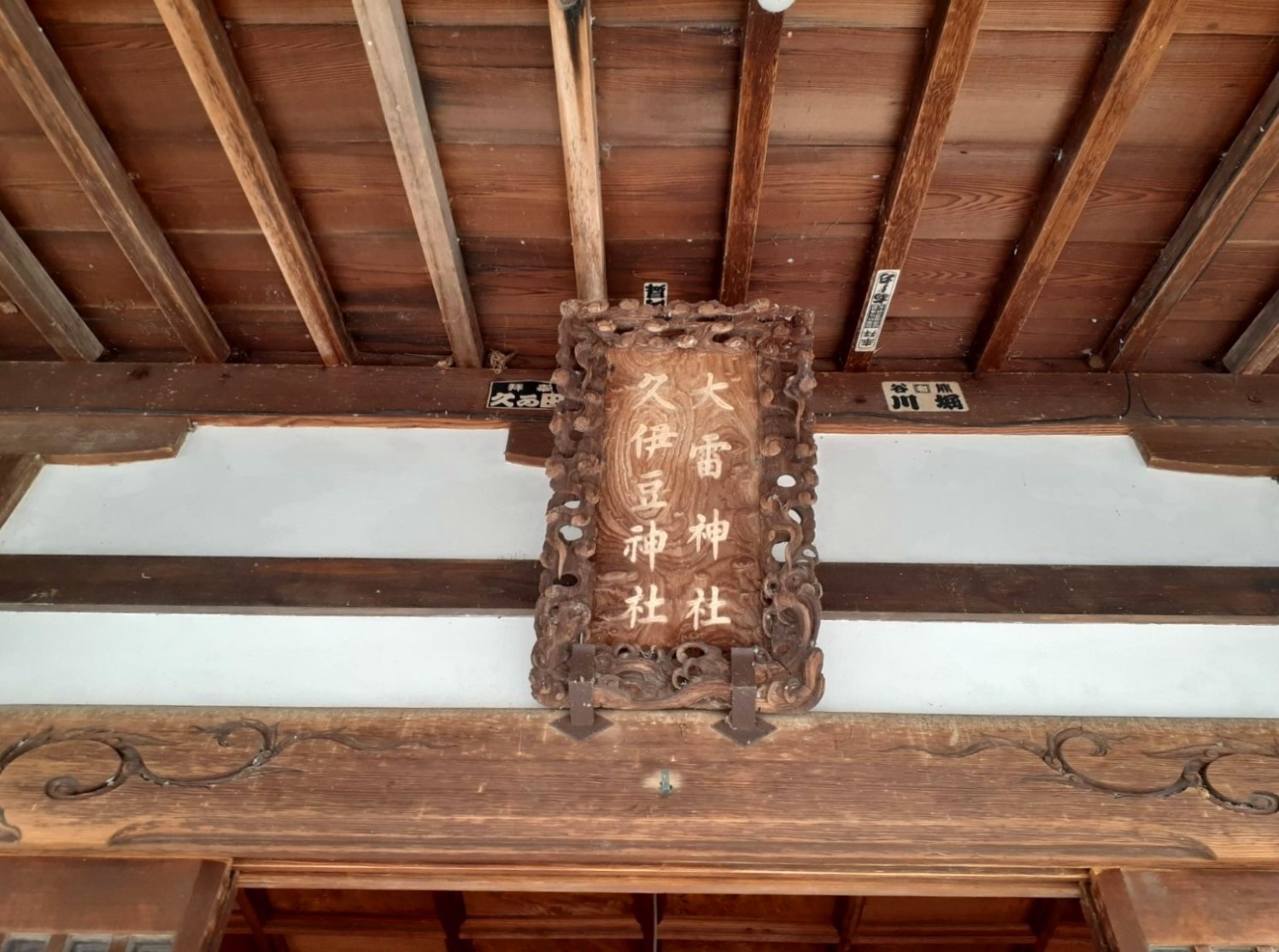 社殿奥、本殿の左右には合祀されている社が張り出している構造となっており、中にはそれぞれ二社ずつ納めされて祀られている。但し詳細は不明。