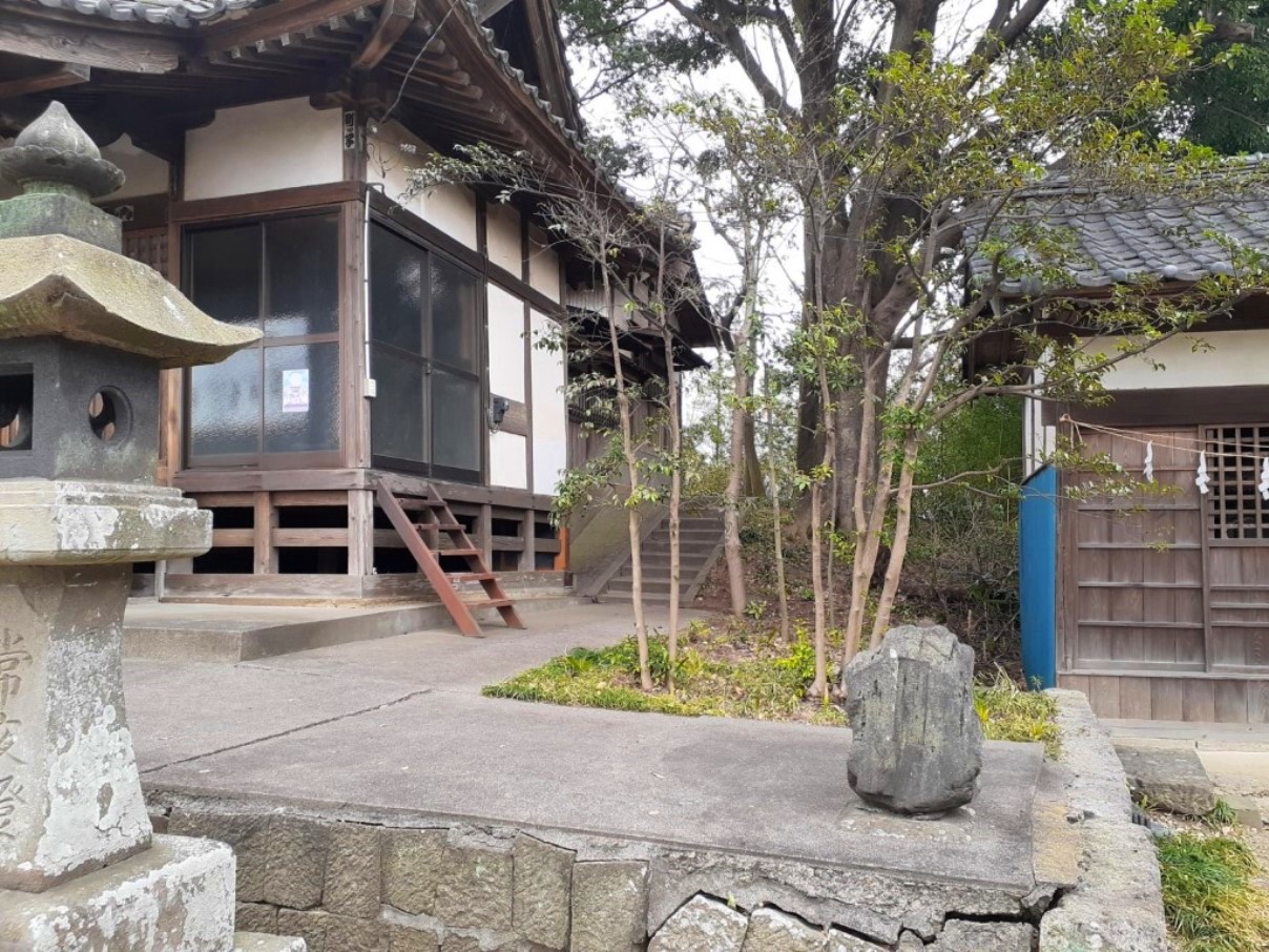 社殿手前左側には祭器庫 社殿手前右側に神楽殿あり